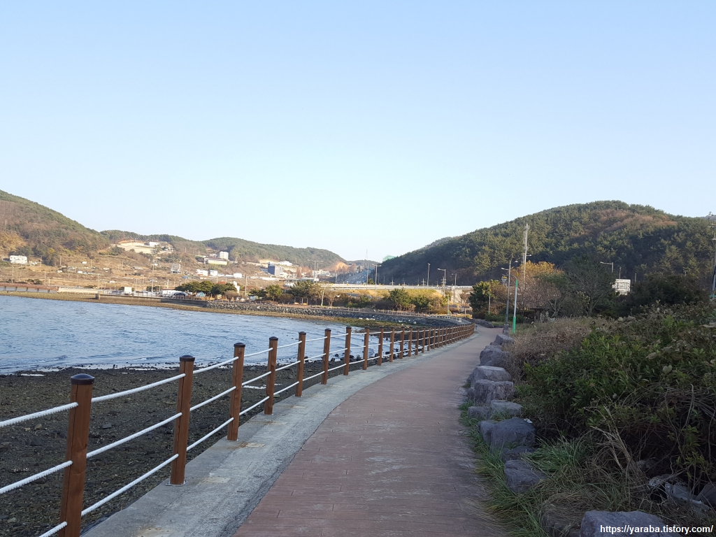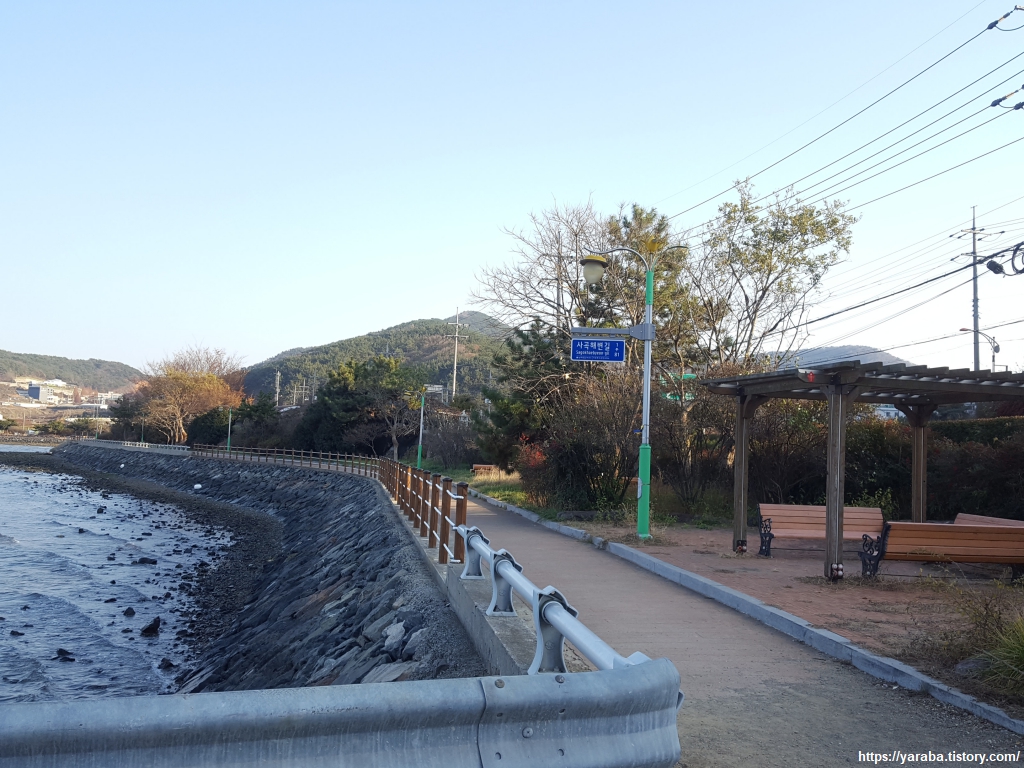 깔끔하게 조성된 사곡 해안 산책로를 따라 길을 이어간다.