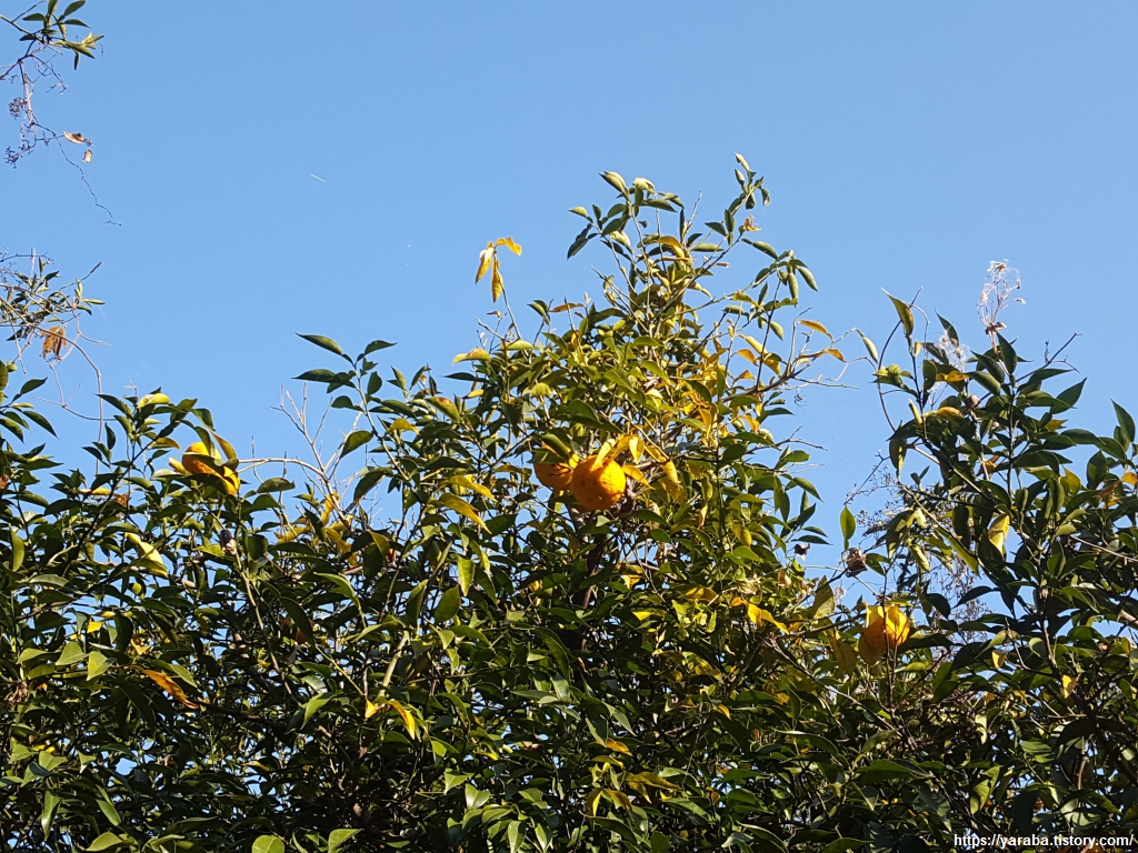 임도 끝에 민가가 등장하는 것을 보니 망치산 산책로도 끝을 보이고 있다. 이곳에도 대롱대롱 달린 유자가 초겨울의 풍경을 새콤하게 만들어준다.