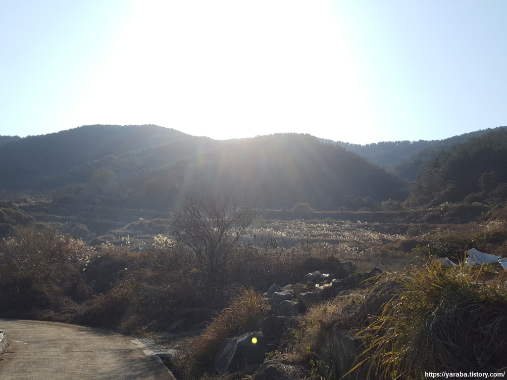 망치산 산책로를 빠져나와 동쪽으로 사등리 마을길을 이어간다. 멀리 사곡리 해변과 함께 사곡리에 들어선 아파트 단지들도 눈에 들어오기 시작한다. 마을길 옆으로는 예전에는 산중에 화전을 가꾸며 살았던 밭 같은데 지금은 풀밭으로 변한 곳이 많다. 몇 년이 지나면 전원주택들이 곳곳에 들어설 모양새다. 인근에 대형 조선소도 있고 아름다운 바다와 산도 있으니 도시 인근에서 전원을 즐기기에는 딱인 곳이기는 하다.