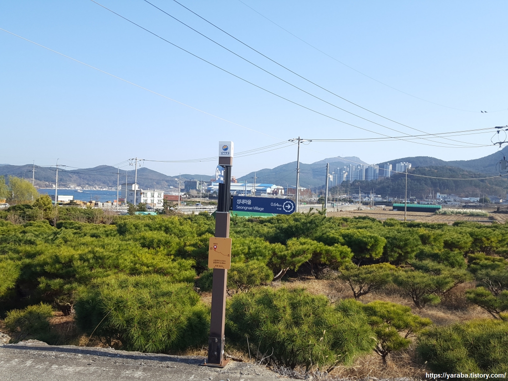 성내 마을을 지나온 남파랑길은 공단 주위를 돌아서 해변으로 나아간다.