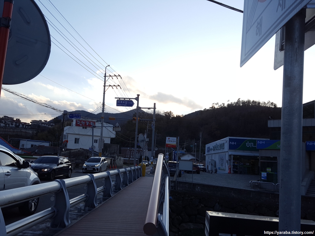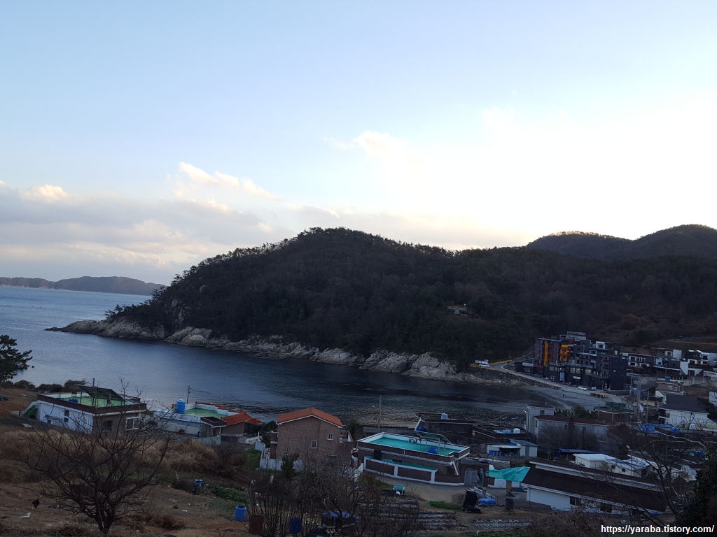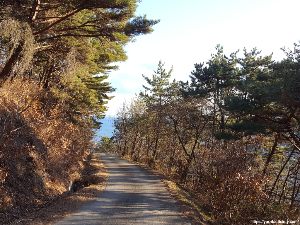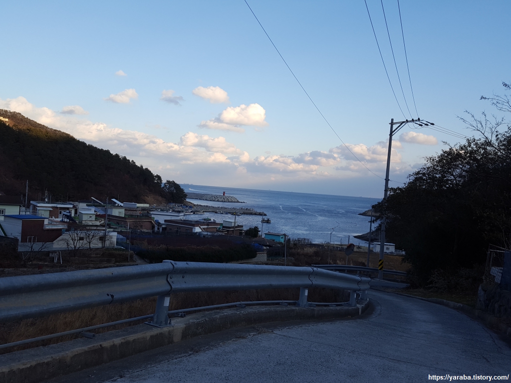 외포리 마을에 들어서면 옥포 대첩로 도로를 따라서 상포, 외포, 소계, 대계 마을을 차례로 지나간다. 이때부터 우리는 시계를 자주 보게 되었다. 오늘 저녁 숙소는 옥포 시내에 잡았기 때문에 시내버스를 타고 이동해야 했기 때문이다. 한 코스만 걸어도 등산도 하고 16km가 넘는 긴 여정이었기 때문에 옆지기는 상당히 힘들어했다. 저녁이 되며 날씨가 많이 추워진 이유도 있었을 것이다.