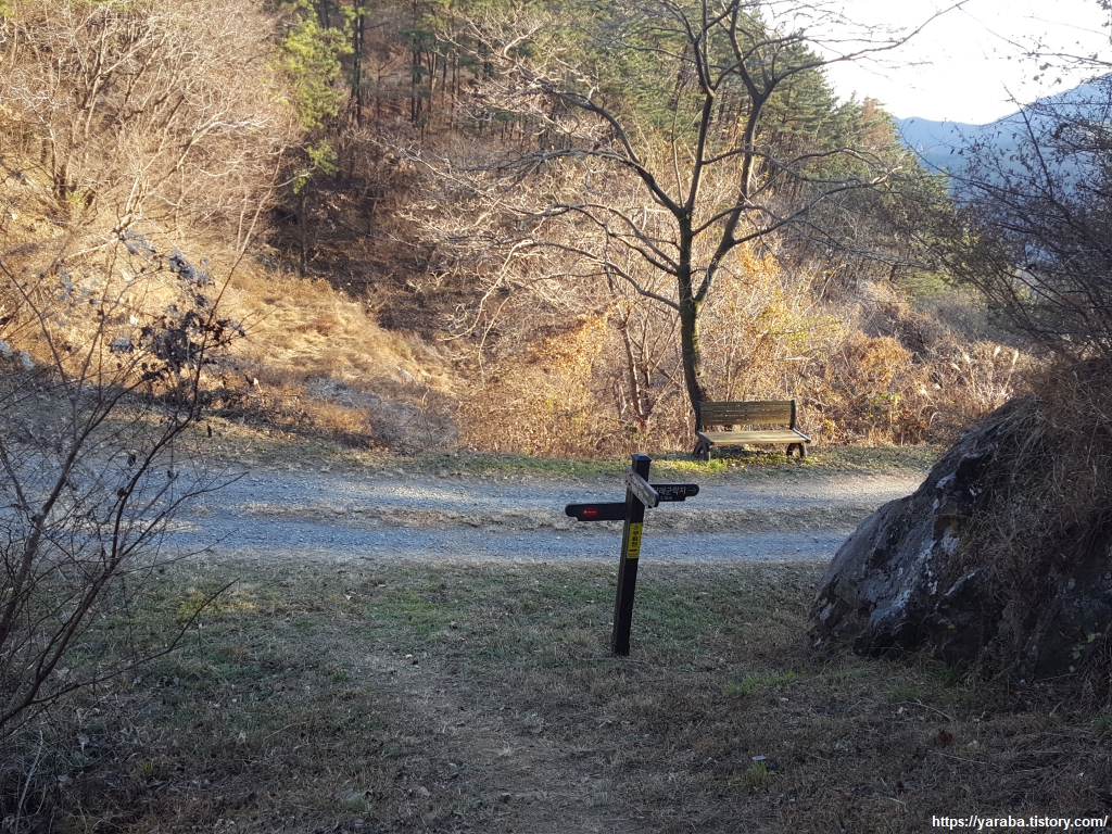 대금산 자락을 빙 둘러가는 임도를 만나면 산 아래까지 구불구불 이어지는 임도를 따라 가벼운 걸음을 내딛는다. 대금산 진달래길이라 이름 붙은 임도다. 무릎만 문제가 없다면 이런 내리막 길은 얼마든지 걸을 수 있겠다는 마음이다.