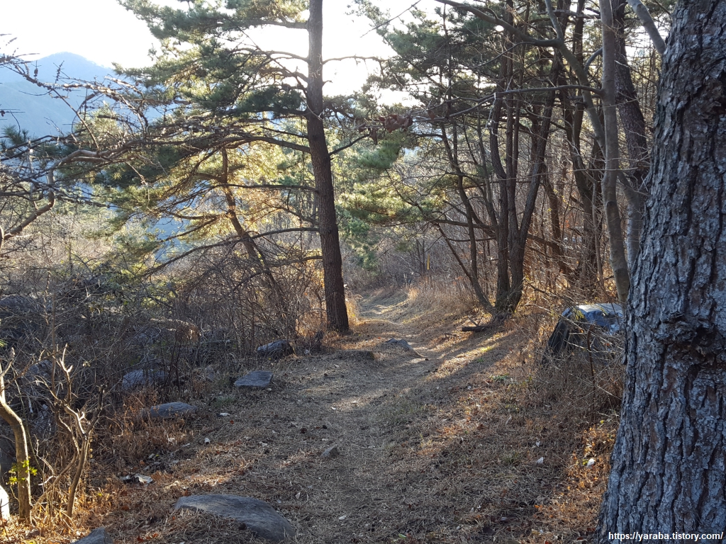 따듯한 햇살이 들어오는 숲을 통과하여 가벼운 걸음으로 숲길을 내려간다.