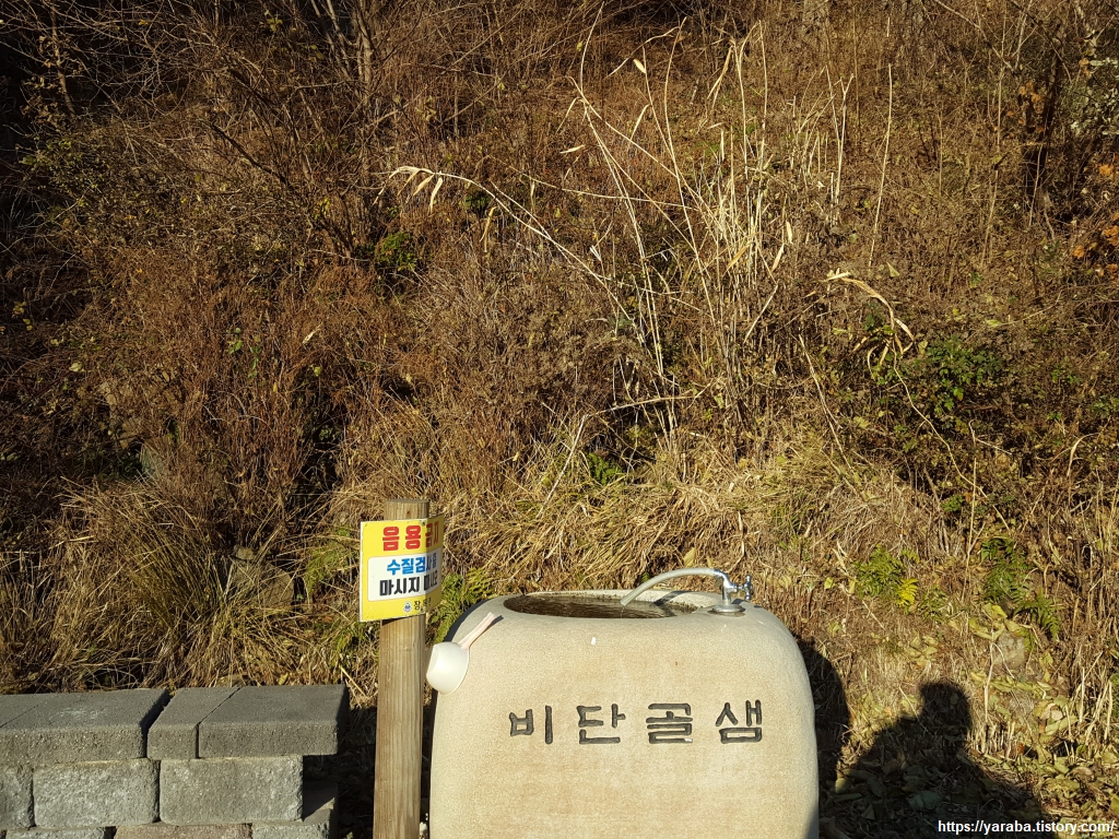 비단골샘이라는 이름은 고급스럽지만 마실수는 없다고 한다. 하긴 전국의 약수터나 우물 가운데 15%는 대장균과 같은 미생물 때문에 마실수가 없다고 한다. 수질 기준이 없던 옛날에는 몸에 좋다고 귀한 대접을 받던 곳들 중에도 상당수가 기준 미달인 것이다. 환경오염의 문제는 이제는 피할 곳이 없는 것이 현실이 아닌가 싶다. 드디어 산 아래로 외포리 마을이 보이기 시작한다.