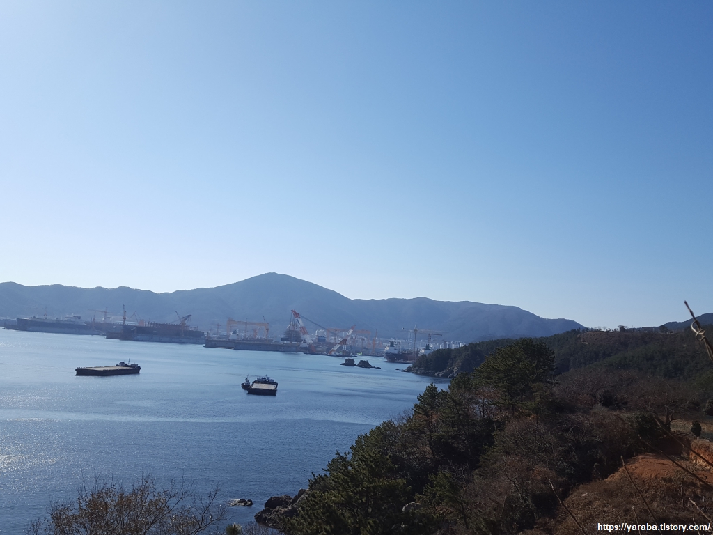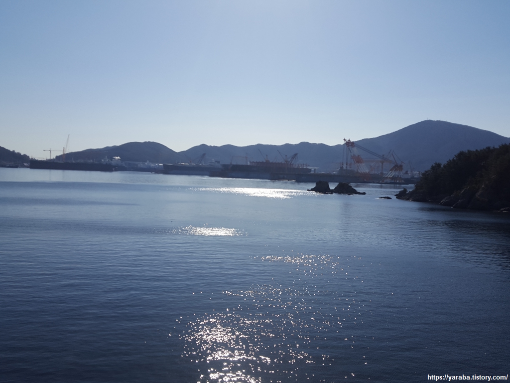 엄청난 크기를 자랑하는 각종 설비들이 자리한 옥포 조선소의 모습을 보며 길을 이어간다.
