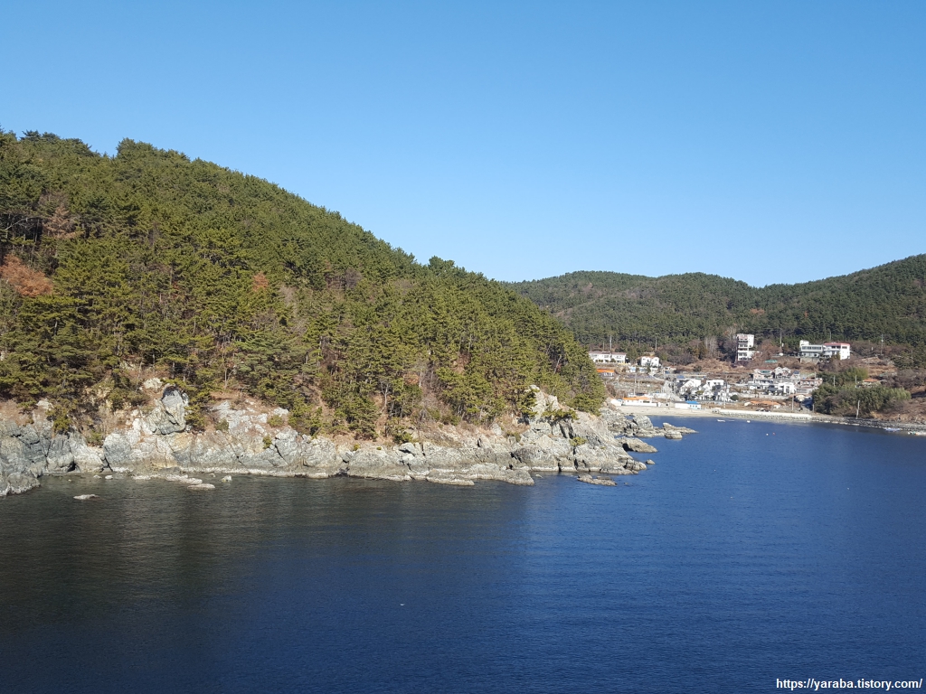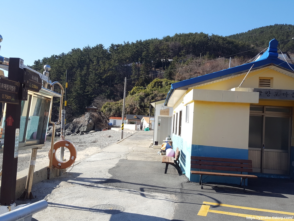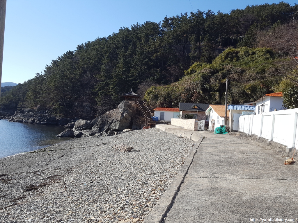 발걸음 소리를 내는 것조차 미안한 마음이 드는 조용한 팔랑포 마을 지난다. 한편으로는 따뜻하고 조용한 바다와 아름 다운 숲을 지척에 두고 사는 마을 분들이 부러운 마음도 있다.