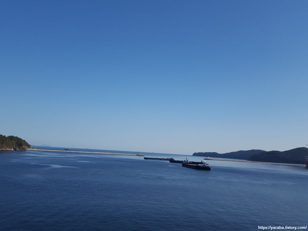동쪽으로 열린 옥포만 입구는 양쪽으로 거대한 방파제가 길목을 지키고 있다. 팔랑포에서 옥포항으로 가는 해안은 바위 절벽들이 이어진다. 조선소들이 바다 건너편으로 자리한 이유일수도 있겠다.