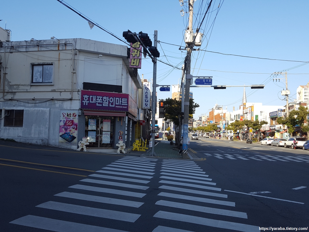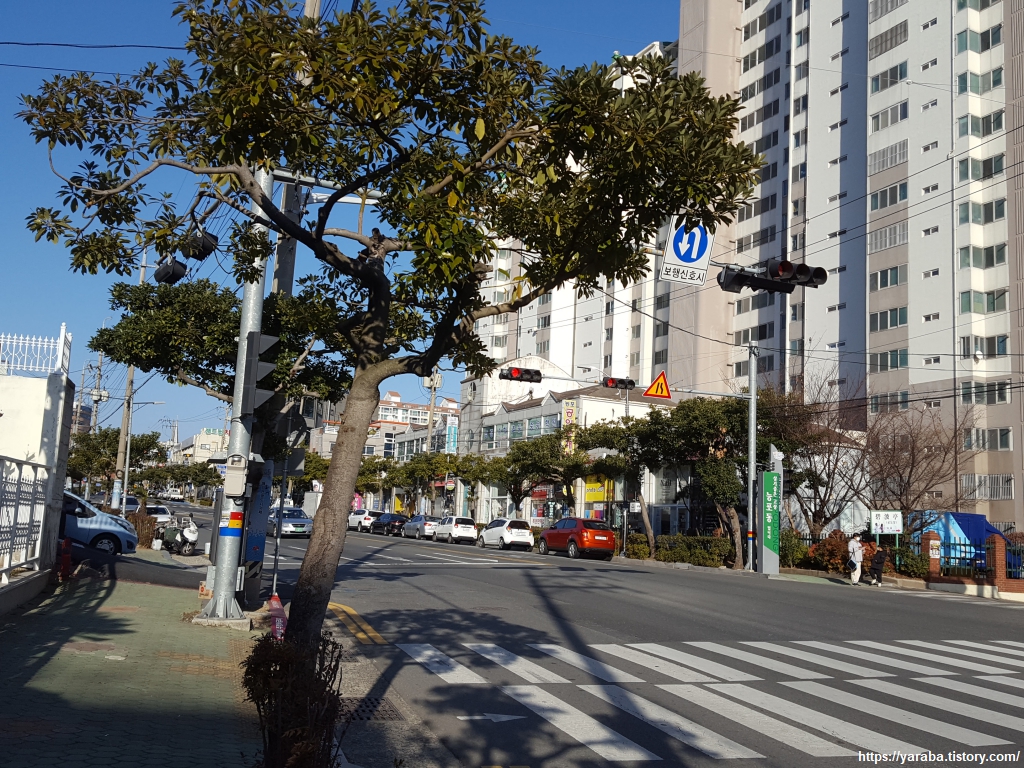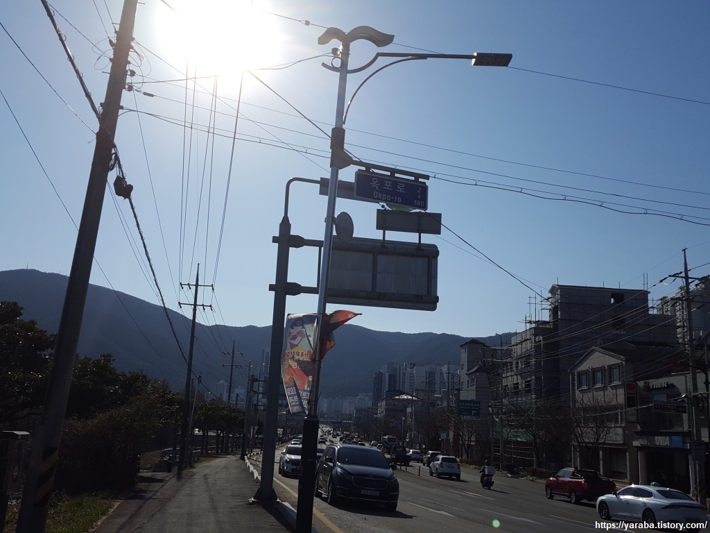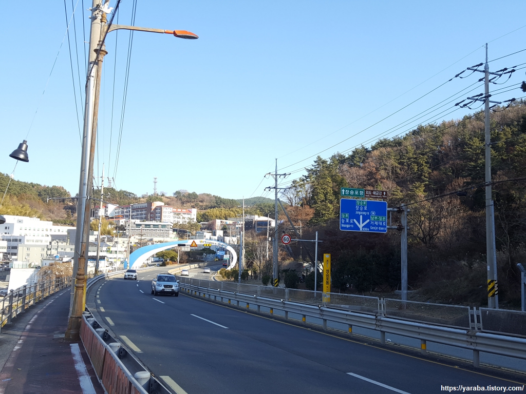 장승포 터미널을 향해서 능포로 도로변을 걷는다. 고래로 유명한 울산의 장생포와 이름은 비슷하지만 장승포는 말 그대로 두모 고개에 장승이 있어서 붙은 이름이다.