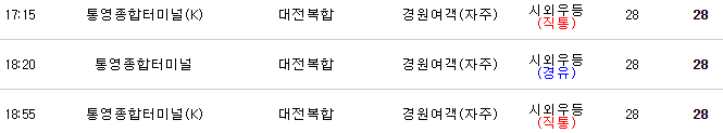 모든 여정을 끝내면 신촌 마을 정류장에서 버스로 통영 터미널로 이동하여 집으로 돌아간다. 바로 앞 거제대교 기준 버스 시간은 다음과 같다.