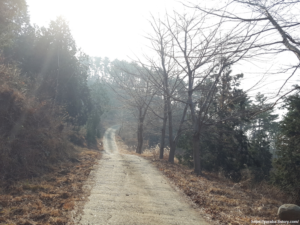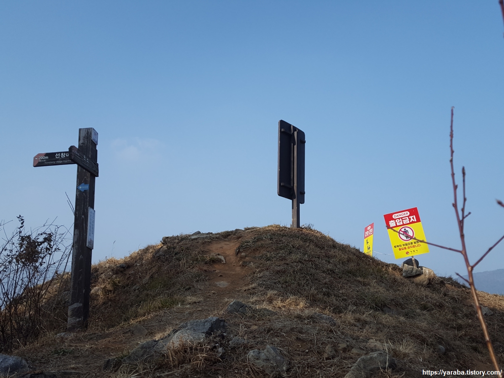 정상에 올라와서 보니 높이가 장난이 아니다. 우리는 오르막이어서 다행이지만 내리막길은 아찔하겠구나 하는 생각이 들었다. 특히 비가 오거나 결빙 상태면 야자 매트가 깔려 있어도 이 길은 거의 내려갈 수 없는 길이 아닌가? 하는 생각도 든다. 정상 한편에 자리를 잡고 김밥으로 이른 점심을 먹었다.