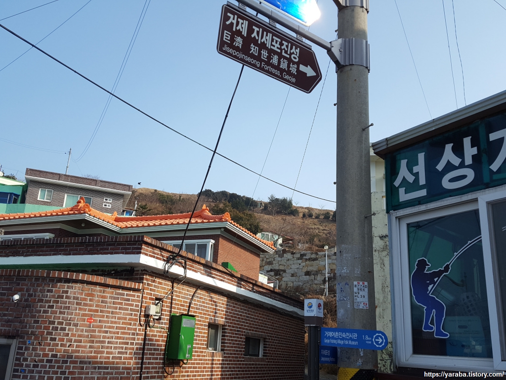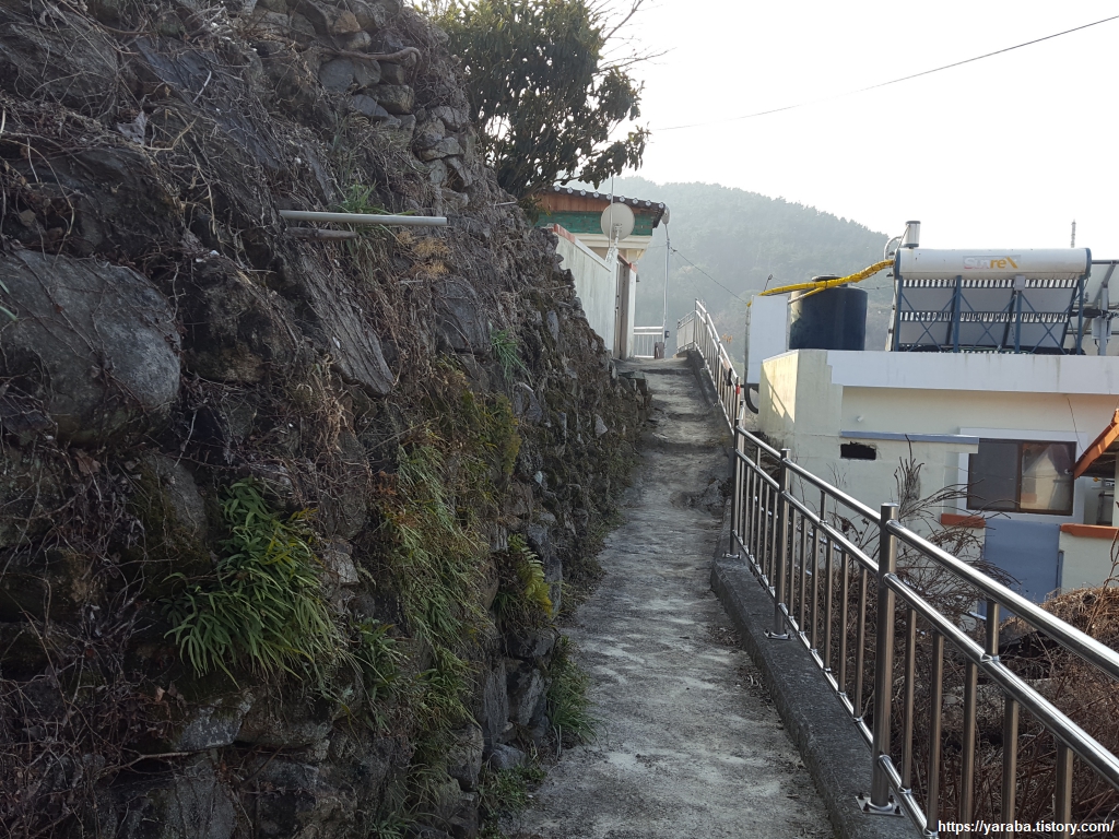 길은 선창 마을 회관을 지나 지세포성 표지를 따라 골목길 안으로 들어간다. 오랜 세월의 흔적을 머금고 있는 돌담길을 따라 올라간다.