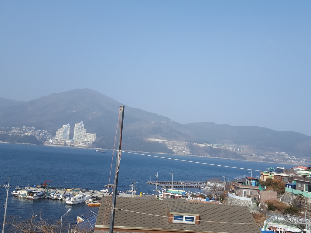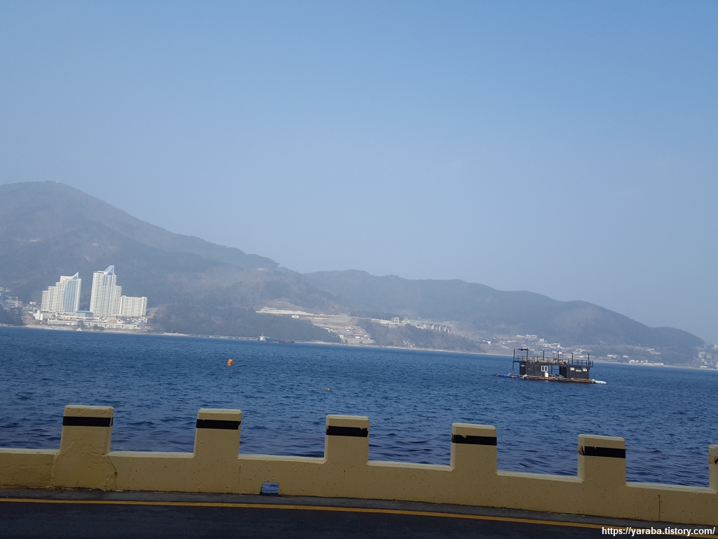 바다 건너편으로는 556미터의 옥녀봉 아래로 거대한 리조트 단지가 존재를 뽐내고 있다.