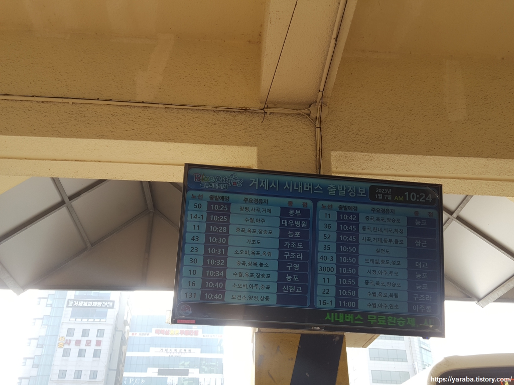 다시 거제 고현 터미널에 도착했다. 구조라 방면으로 가는 23번 버스를 타고 일운농협 정류장에서 하차하여 남파랑길 21코스 걷기를 시작한다. 거제시의 시내버스 시간은 항상 정확하다. 거제 여행에서 매력적인 교통수단이었다.