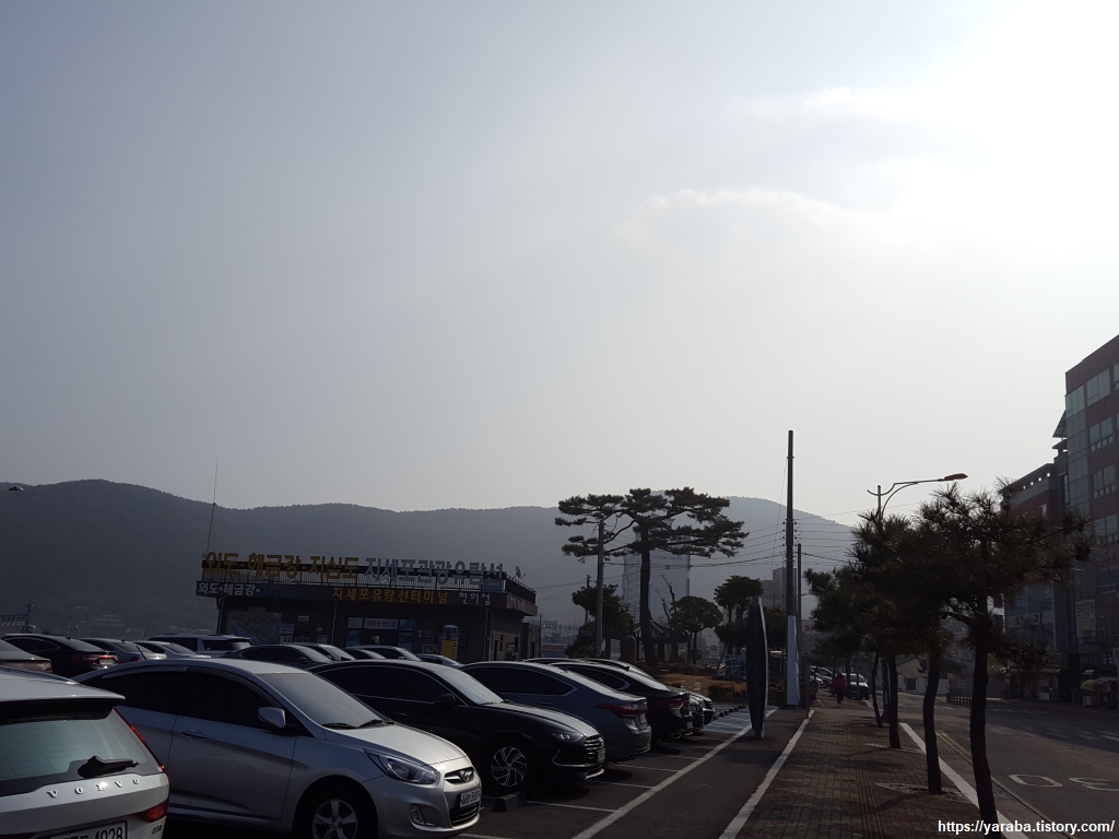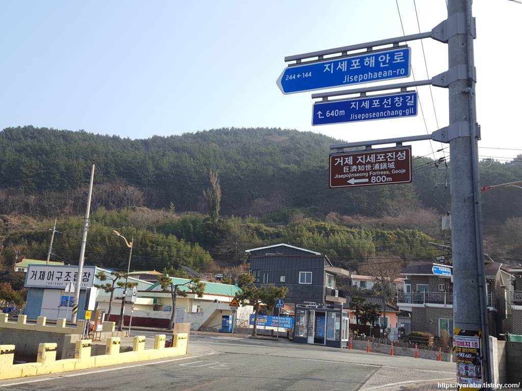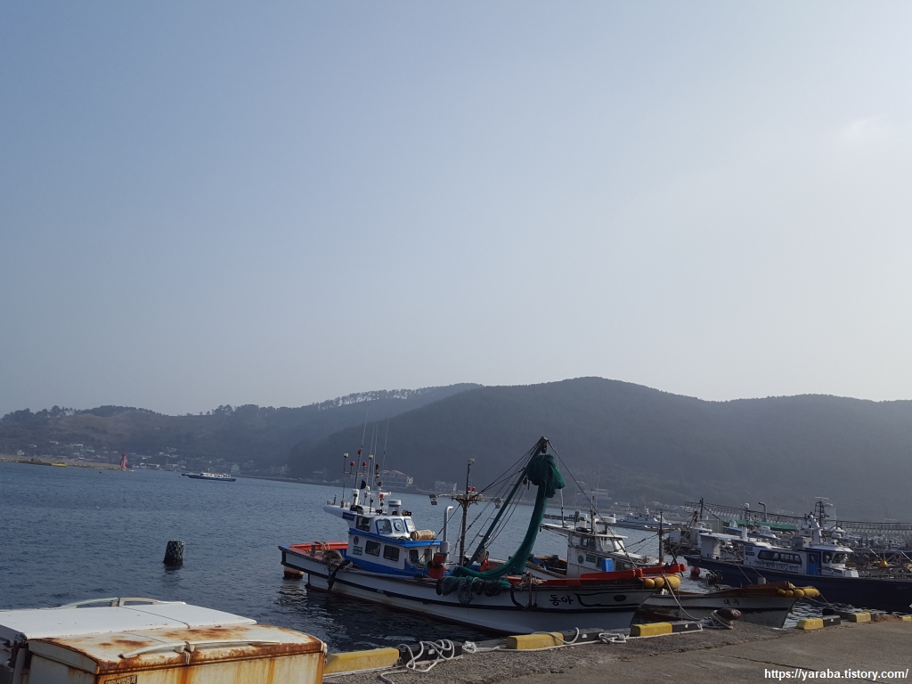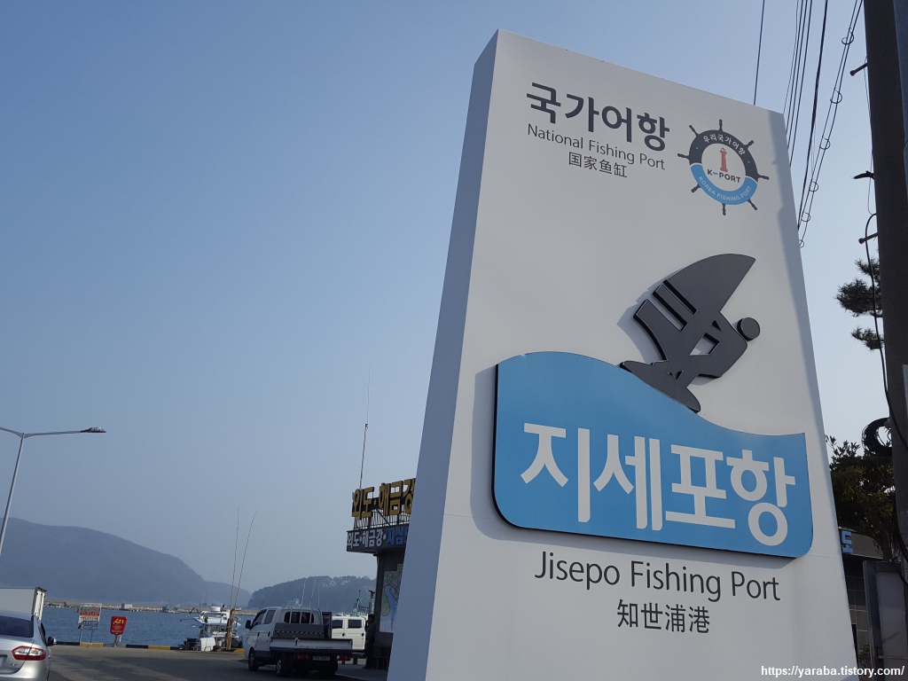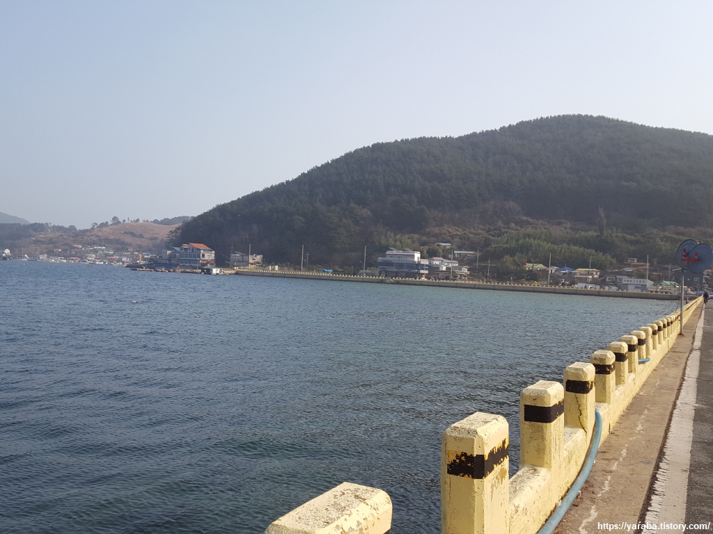 지세포 해안로를 따라 항구를 빙 둘러간다.