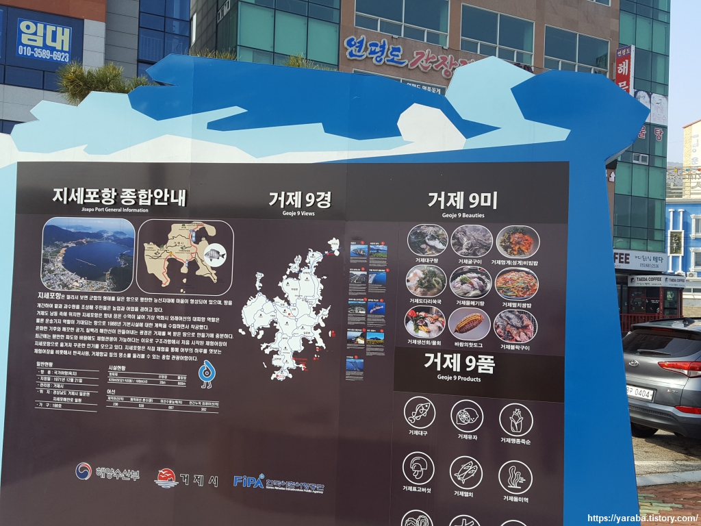 안내판에 거제 9경을 나열해 놓았지만 안타깝게도 남파랑길은 9경의 근처를 지나지만 직접 통과하지는 않는다. 한편으로는 사람들이 몰리는 곳이니 피해 갈 수 있어 다행이고, 다른 여행으로 이미 방문했거나 하는 장소들이기도 하다. 거제 9품 중에는 거제 대구와 거제 유자는 충분히 공감이 되는 상품이었다. 거제 남파랑길에서 많이 만날 수 있었다.