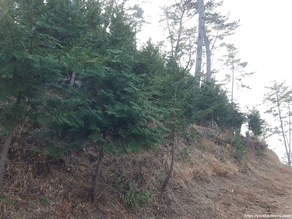 위로는 듬성듬성한 나무 숲처럼 보이기는 하지만 소나무 사이사이로 어린 편백이 자리하고 있는 신구세대가 공존하는 숲이다. 산의 나무를 모두 베어내어 민둥산으로 만든 다음에 새로 조림하는 것보다 이런 방식의 조림이 참 좋다는 생각이 든다.