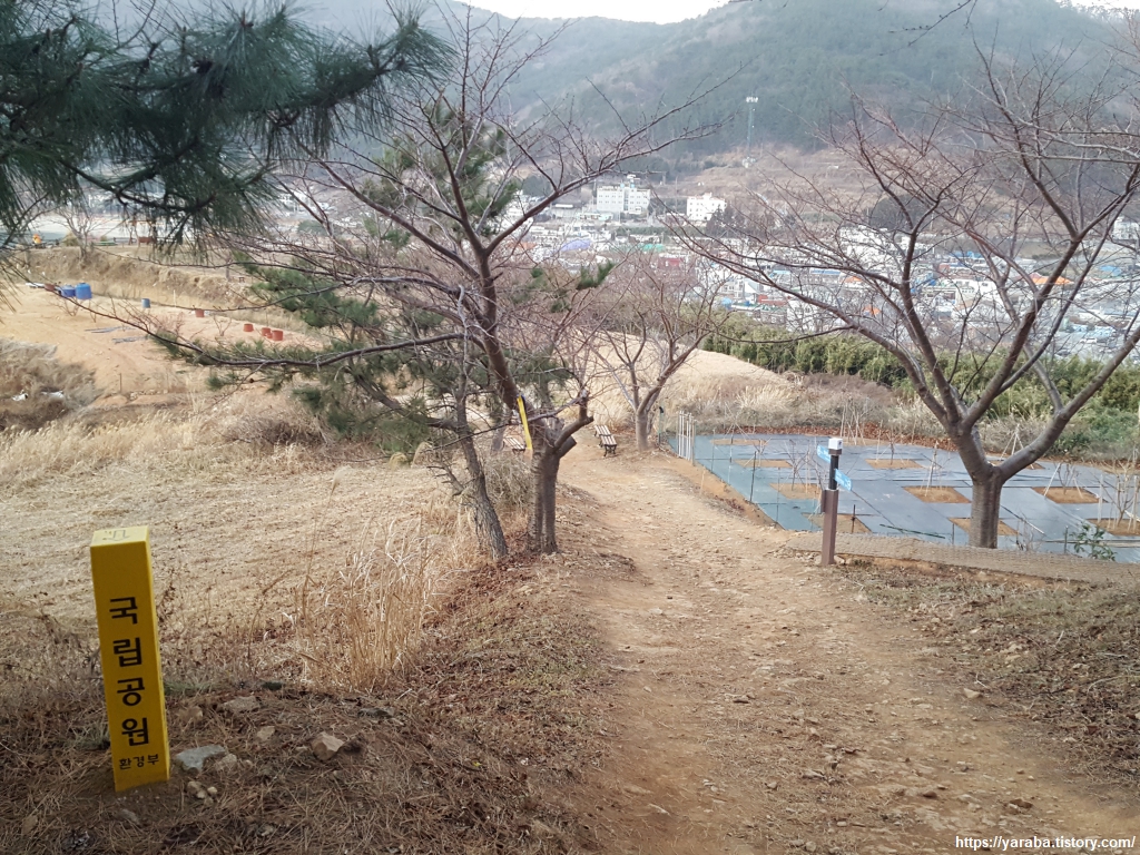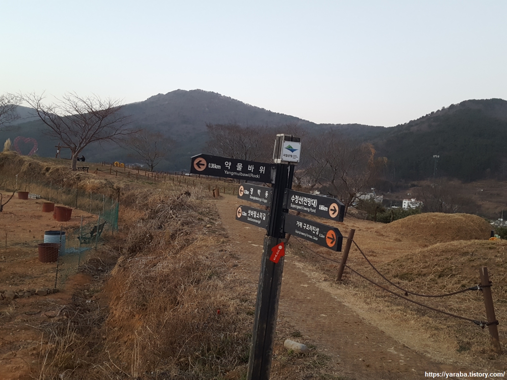 수정산에는 여러 갈래의 탐방로가 있는데 남파랑길 표식과 리본을 따라서 길을 이어간다. 이전의 남파랑길 경로와 조금의 차이가 있다.