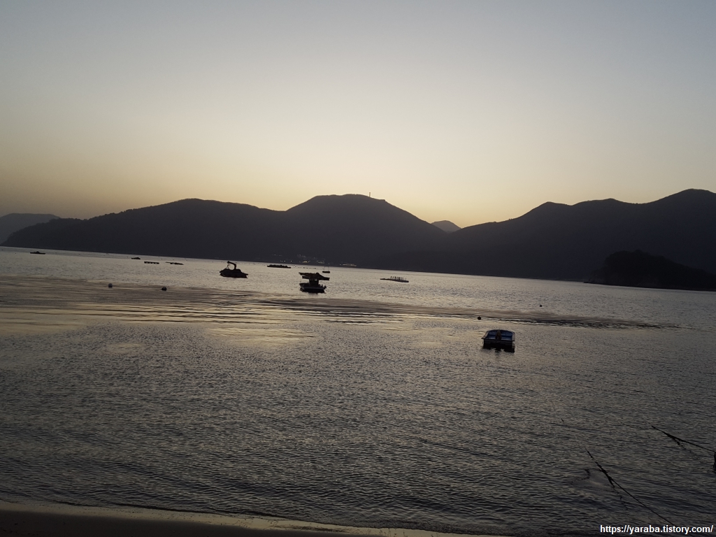 어스름한 바다 풍경에 몸은 온종일 걷기에 지쳐가지만 마음만은 감상에 젖는다.