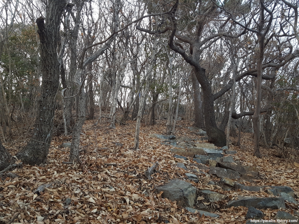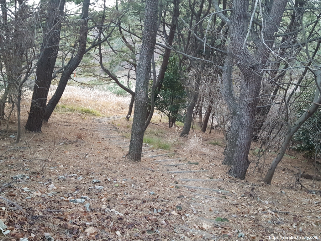 해안도 수정산 입구도 온통 돌 투성이다. 최근에 만든 것으로 보이는 돌계단을 따라 수정산을 오르기 시작한다.