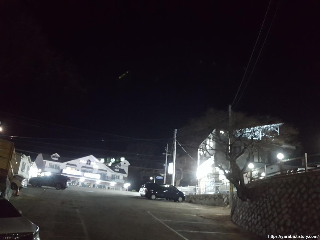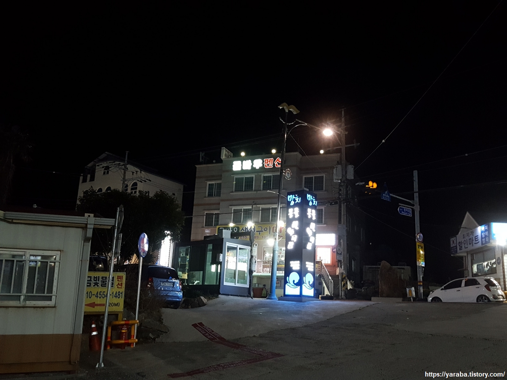 망치 몽돌 해수욕장의 밤 풍경은 여러 펜션과 카페에서 나오는 불빛으로 불야성이다.