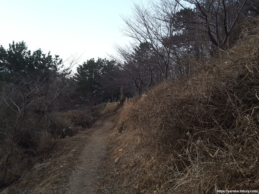 주위가 점점 어두워지는 시간이라 높지 않은 산이기는 하지만 해가 완전히 지기 전에 산길을 벗어나야 한다는 조바심이 걸음을 재촉한다.
