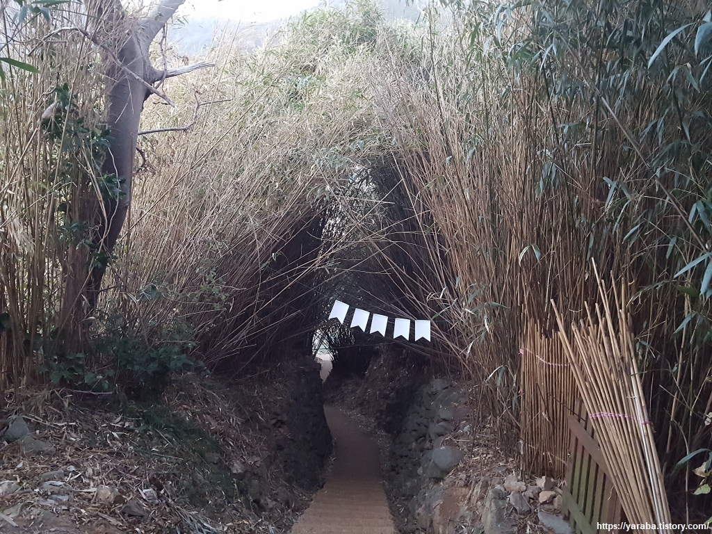 수정산을 빠져나오면서 만난 뜻밖의 선물은 환상적인 조릿대 숲 터널이었다. 살금살금 들어오는 햇빛이 있었다면 더욱 아름다웠겠지만 어둑어둑한 저녁의 숲 터널도 스산하니 나름의 매력이 있었다.