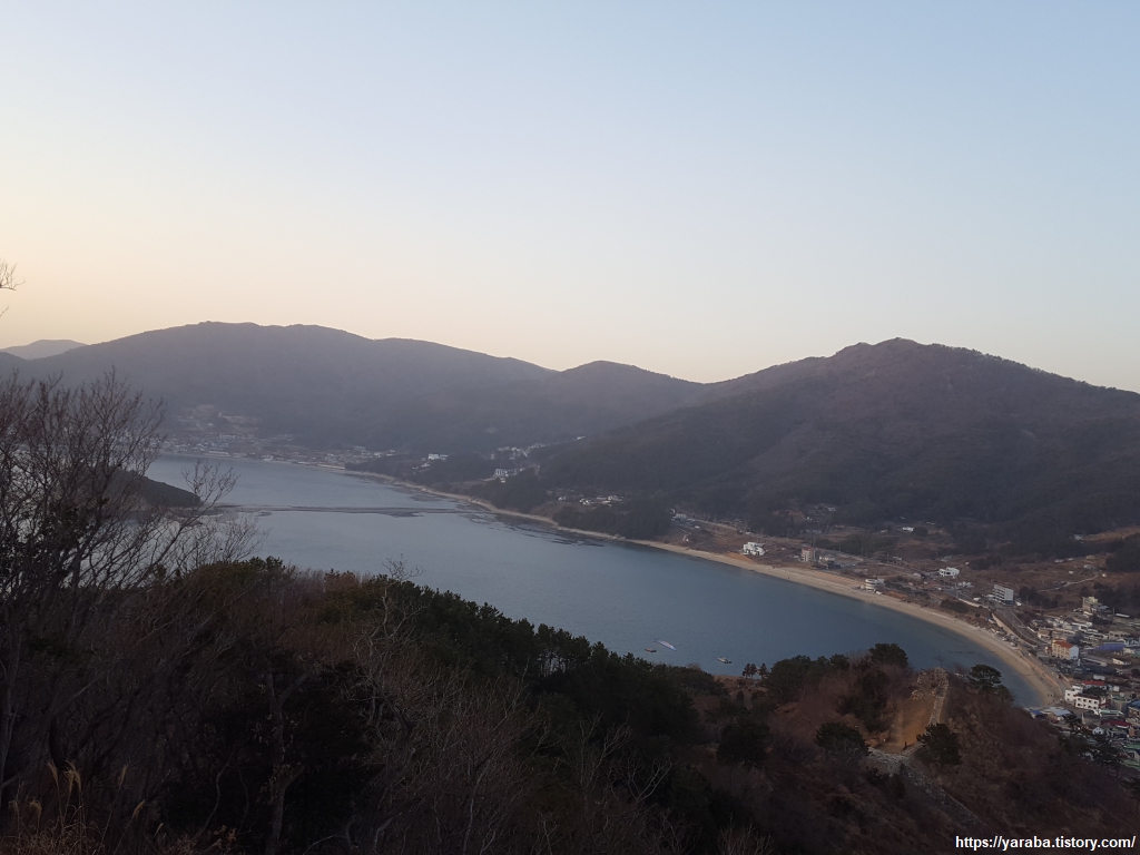 반대편으로는 우리가 지나왔던 구조라 마을의 전경과 긴 모래사장을 가진 구조라 해수욕장 그리고 멀리 오늘 하룻밤 묵어갈 망치 몽돌 해수욕장의 모습도 보인다.