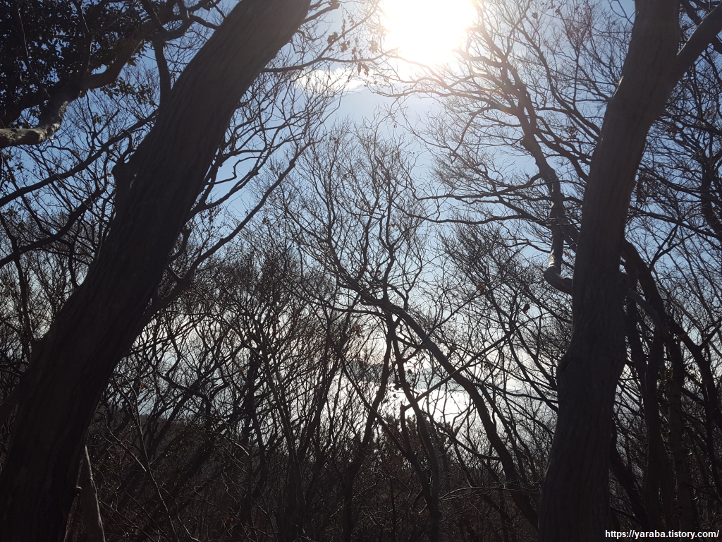 급격한 경사의 내리막길에서 때로는 나무를 잡으며 내려가는데 장갑도 벗고 맨손으로 줄기를 쓰다듬으며 길을 내려간다. 때로는 거칠고 때로는 반들반들한 줄기의 감촉을 느끼며 나들과 악수하는 기분이다. 내가 만졌다고 기분이 상하지 말았으면 하는 마음뿐이다.