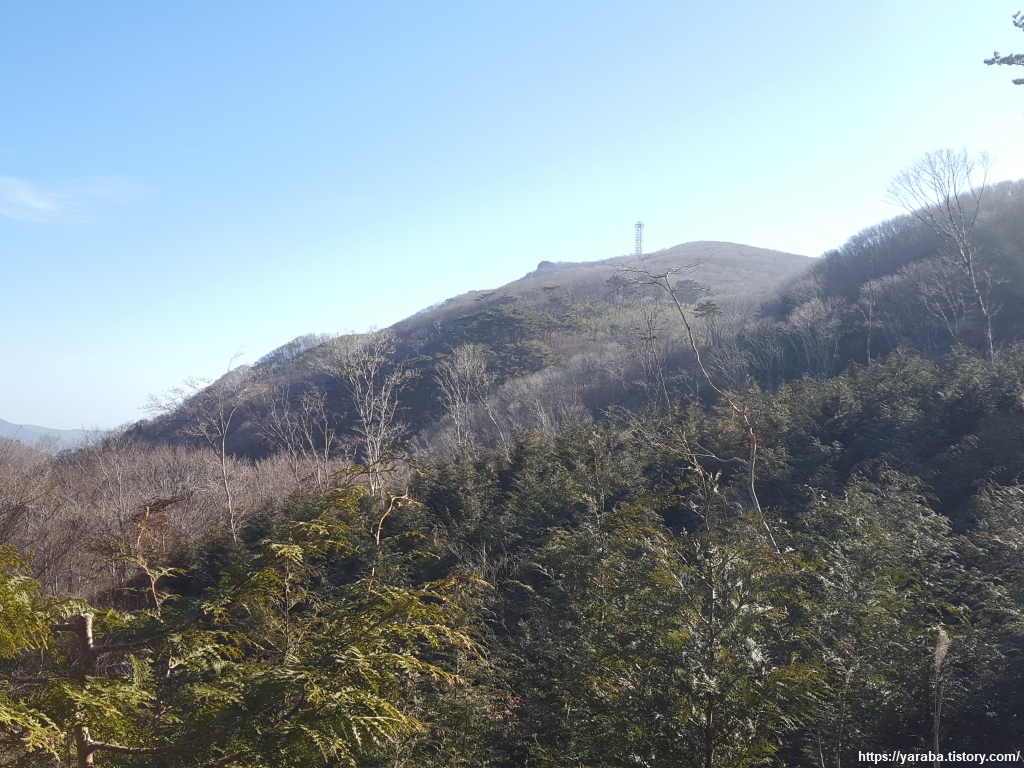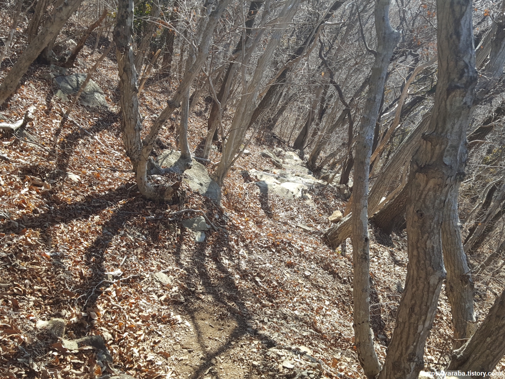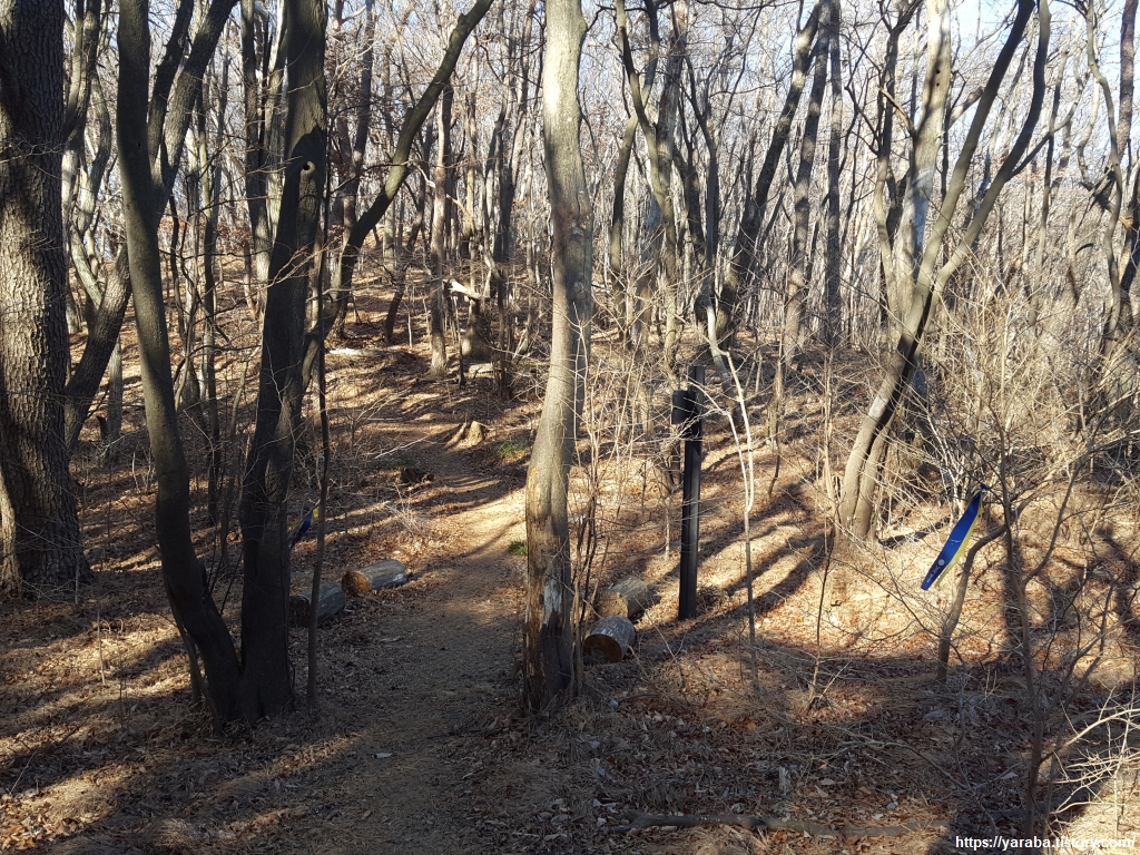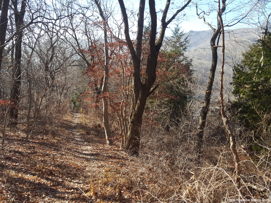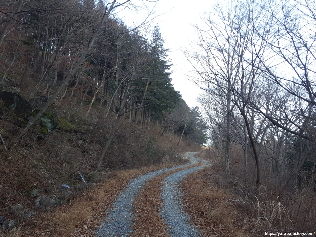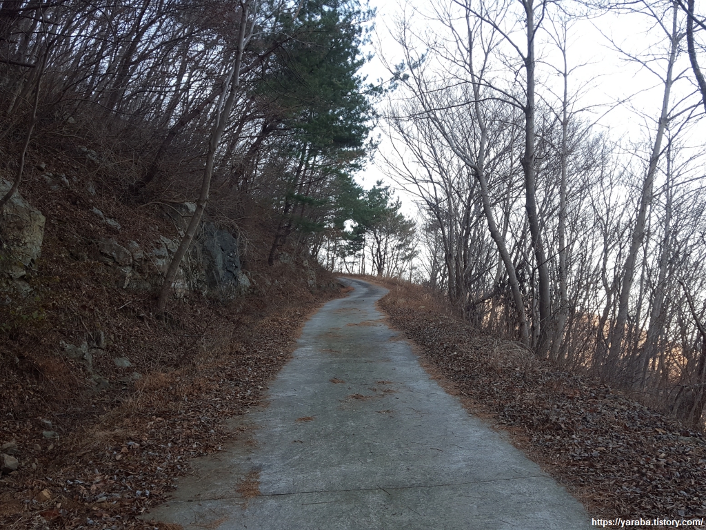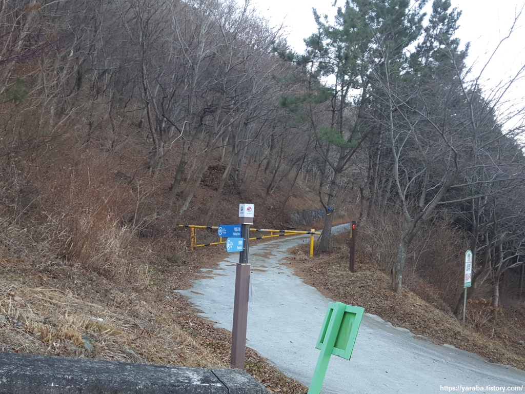 등산로와 만나는 양화 삼거리를 지나면 또 다른 임도와 합류하여 오르막을 오르게 된다.