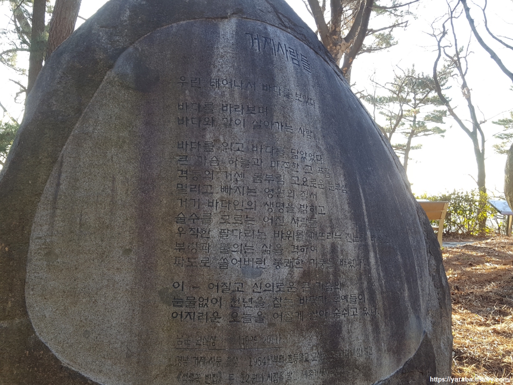 시비 동산의 여러 시 중에서 남운 원신상님의 "거제 사람들"을 옮겨본다. 거제와 거제 사람을 잘 표현하고 있는 한 편의 시다.