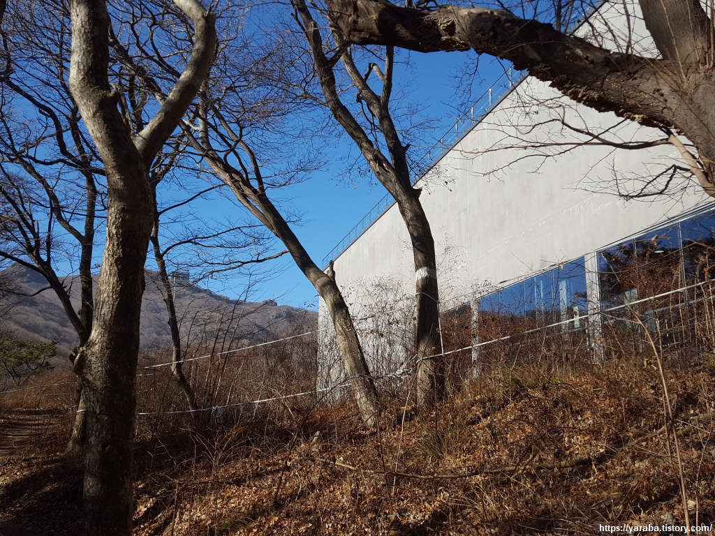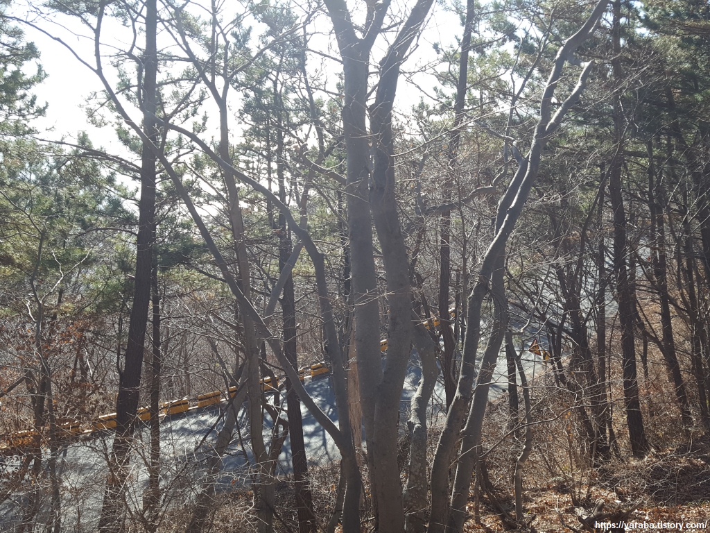 산 아래로 도로가 보이기 시작하더니 이내 케이블카 승차장을 지난다. 이곳에서 케이블카 승차장으로 바로 갈 수 있는 경로가 있었다면 참 좋을 텐데 하는 아쉬움이 있었다. 잠시 쉬어 갈 수도 있고, 케이블카와 연계해서 걸을 수도 있으니 말이다. 지금은 케이블카를 타려면 한참을 돌아가야 한다.