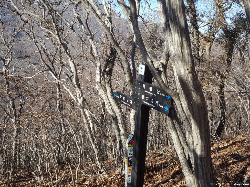 드디어 북병산로 도로에 진입한다. 망치 고개까지 오르막은 계속 이어지지만 다음 단계에 진입했다는 기쁨이 있다. 인도가 없는 도로변을 걷는 위험성이 있지만 차가 많지 않아 그나마 다행이다.