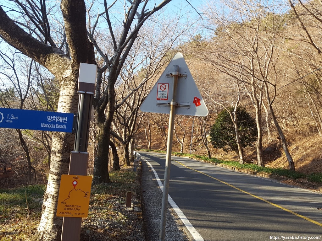 벚나무가 꽃을 피울 무렵이면 환상적인 드라이브 코스가 될 것 같은 아름다운 길이지만 걷기족에게는 그리 친절하지는 않다.