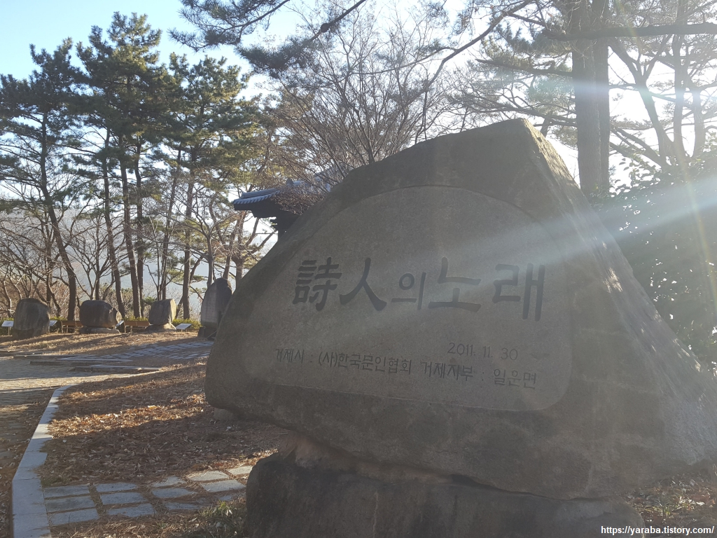 도로변을 걷다 보면 망치 고개에 설치되어 있는 시비 동산도 지난다. 거제 출신의 유치환, 김기호, 송준오, 원신상 시인의 시와 거제의 아름을 표현한 시들을 자연석에 새겨 놓은 시비들을 쉼터와 함께 세워 놓은 곳이다.