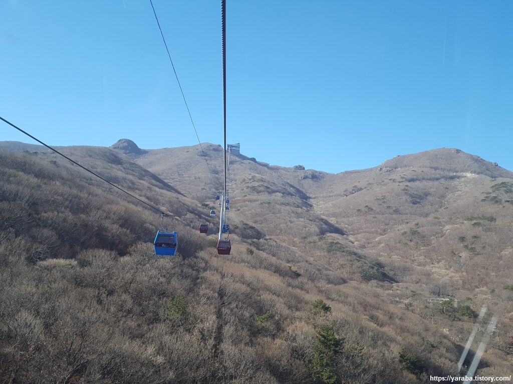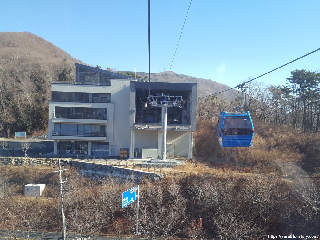 지도 앱을 열고 과연 케이블카를 타고 올라가면 남파랑길 경로를 이어서 걸을 수 있을까? 하는 궁금증에 대한 답을 찾아보았지만 확신이 없다. 다시 돌아서 학동 고개를 가서 오르막을 오르자니 이곳까지 온 시간이 아깝기도 하다. 휴일을 맞아 이곳을 찾은 사람들 사이에서 이런저런 고민을 하다가 편도(12,000원) 티켓을 끊고 일단 노자산 정상으로 가기로 했다. 길이 없으면 지도 앱을 보고 길을 만들며 이동하겠다는 호기스러운 마음이었다.