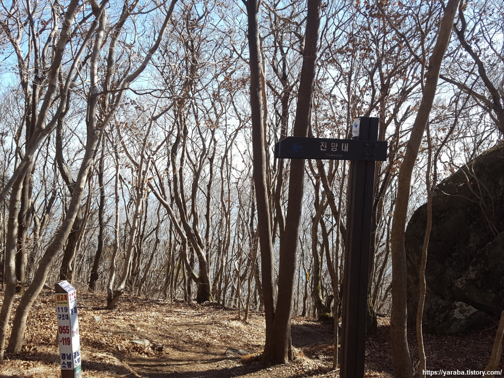 전망대 하단에 마늘 바위 가는 길 화살표를 따라서 등산로에 진입한다. 길이 없으면 무작정 길을 만들어서 가야 하는가? 하는 염려가 있었는데 천만다행이었다.
