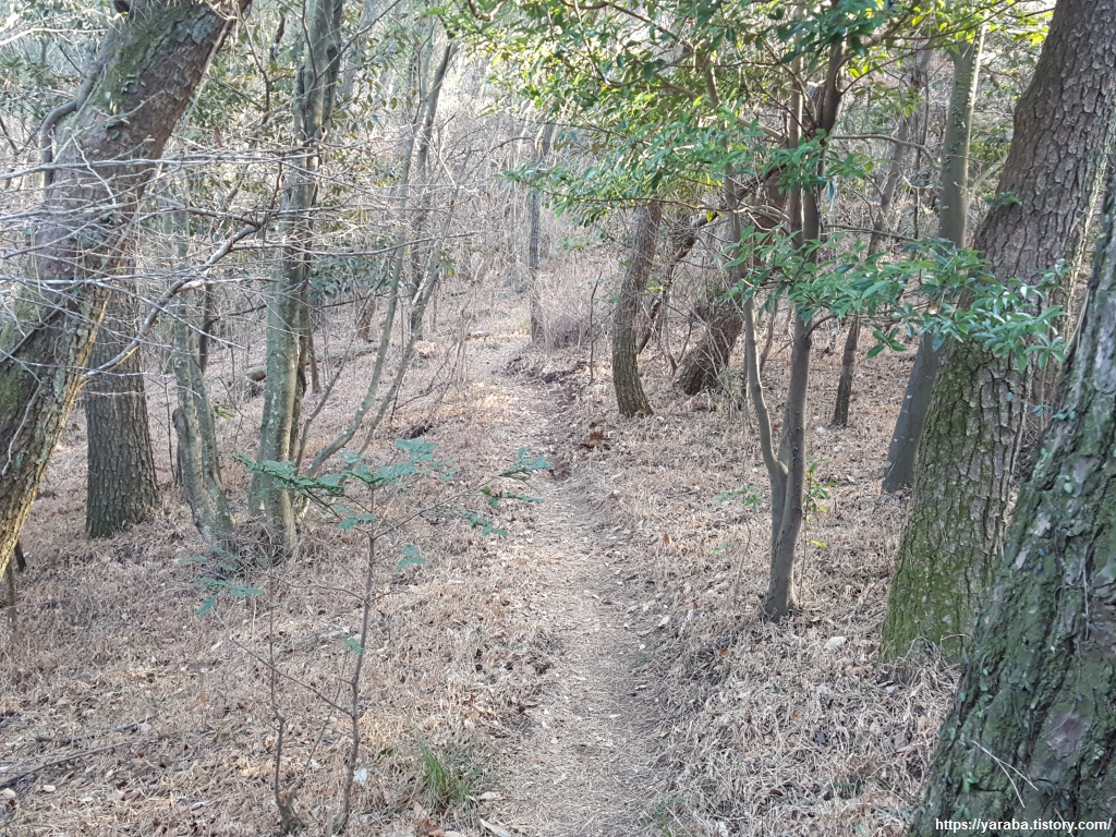 남파랑길 리본을 따라 숲 속 오솔길을 걸어간다.