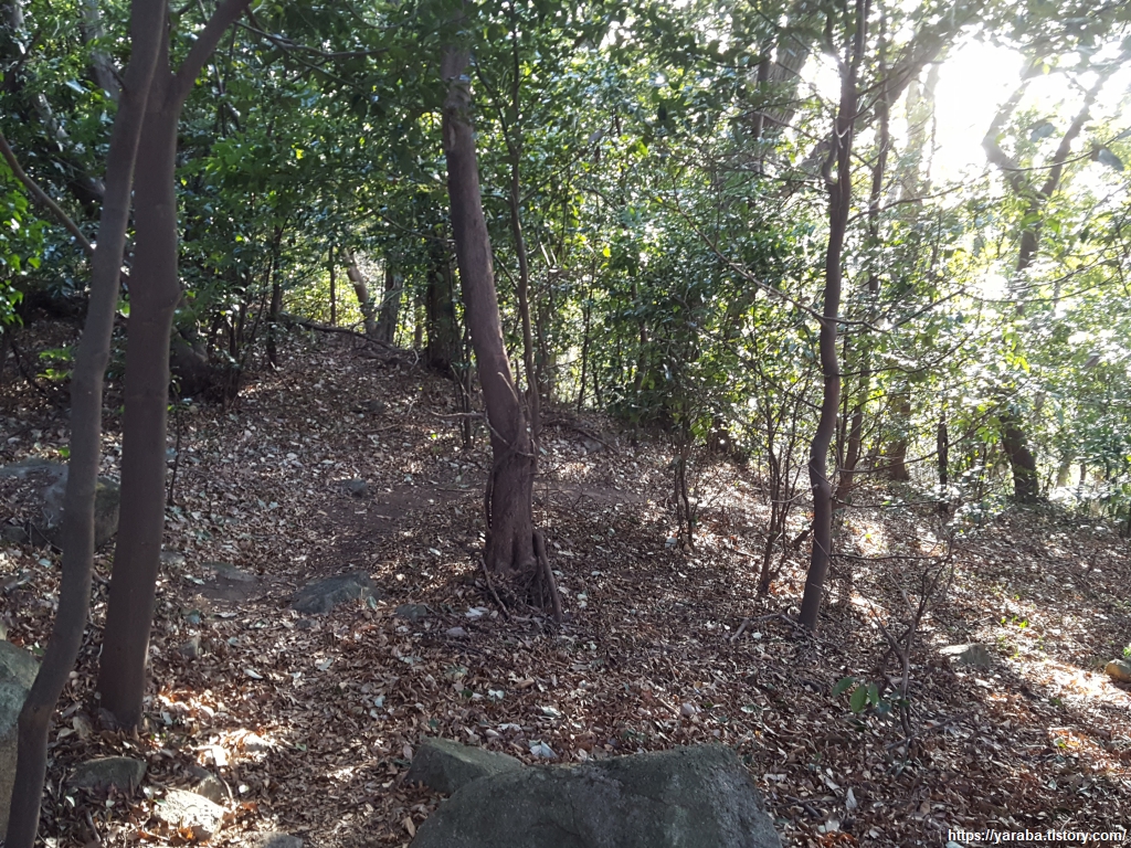 다대산성의 다른 면은 성벽의 모양도 없고 그저 돌무더기로 변했다. 수많은 세월이 흘러서 그렇지 성벽을 건축할 당시 성 안쪽은 이렇게 숲은 아니었을 것이다.