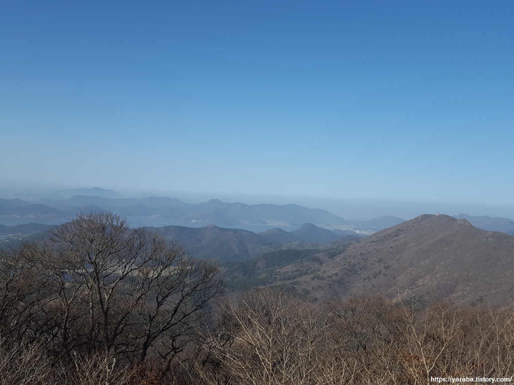 노자산에서 뫼바위를 거쳐 가라산으로 오면서 너무 아름다운 풍경을 만난 이후라서 그럴까? 가라산 봉수대에서 바라보는 풍경이 아름답기는 하지만 가슴을 뛰게 할 정도의 그림은 아니다.