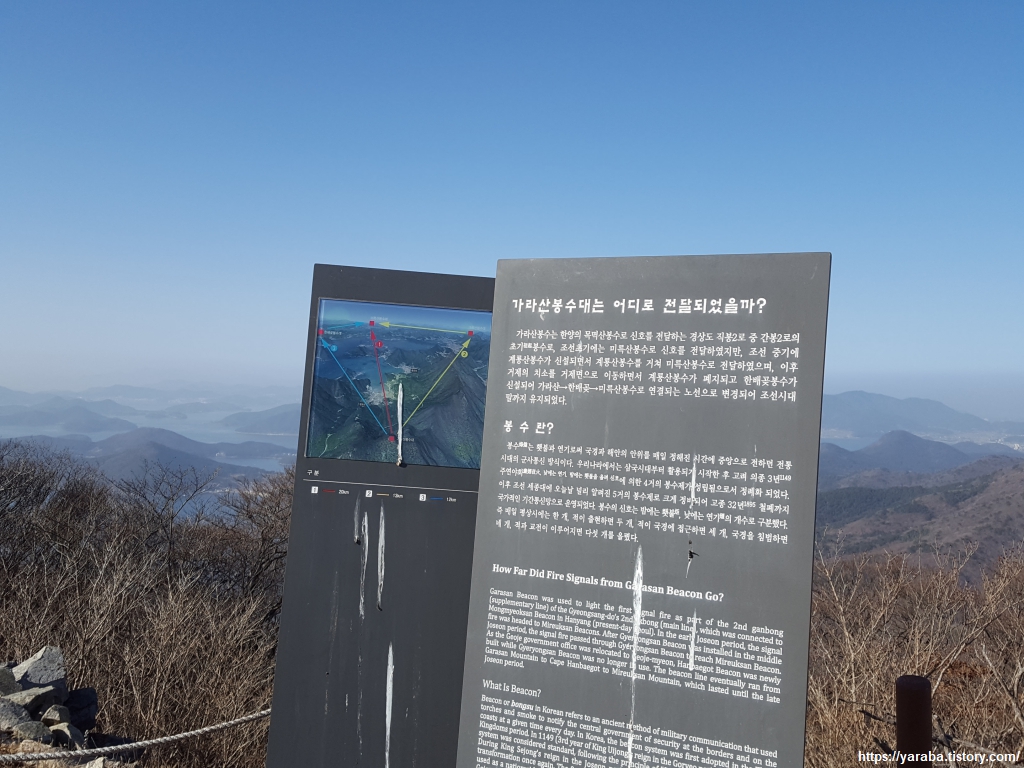 남파랑길 23코스는 가라산 정상을 지나며 거제시 동부면에서 남부면으로 넘어간다. 지역 전체가 한려 해상 국립공원인 지역이다. 이곳은 남해안의 중요 봉화 시작점으로 고성의 미륵산 봉화와 연락했다는 기록과 거제 계룡산 봉화와 연락했다는 기록이 있다. 왜적의 침입을 알리는 핵심 지점이었던 것이다.