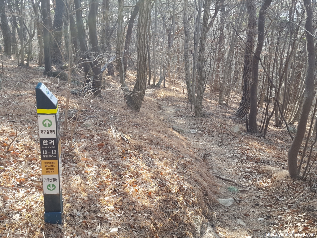 내려가는 길에 탑동 마을로 이어지는 등산로도 있지만 계속 저구 삼거리 표지판을 따라 길을 이어간다.