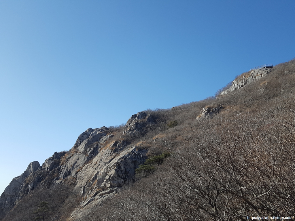 깎아지른 절벽 위 바위에 앉아 한참을 쉬었다 간다.