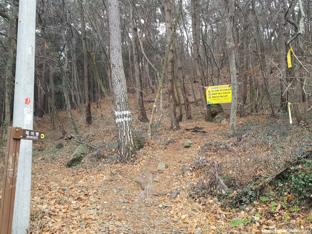 제석봉 팻말을 따라 오르막 산책길을 오른다.