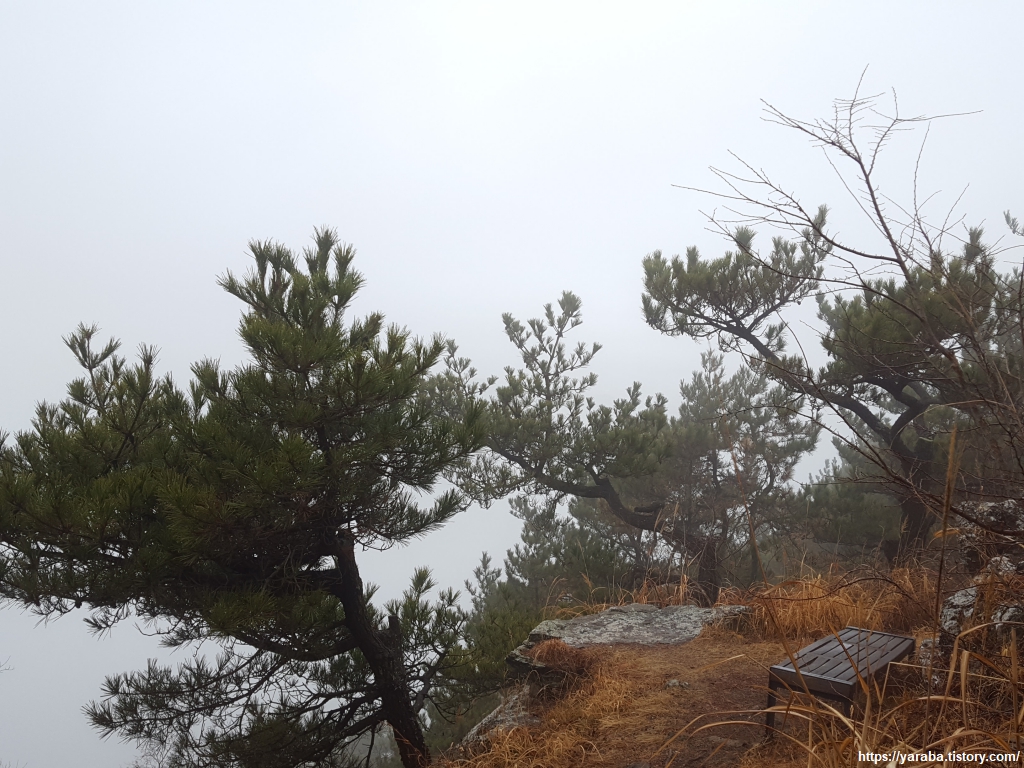 좋은 날씨였다면 주위 풍경을 제대로 감상할 수 있는 위치였을텐데, 지금은 주위로 온통 구름뿐이다. 벤치에 앉아 김밥으로 이른 점심을 먹고 발암산을 향해 걸음을 옮긴다.