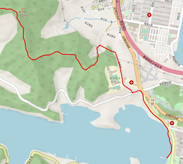 통영의 남파랑길 마지막 코스인 30코스는 무전동 해안길을 걷다가 동원중고등학교를 지나 향교봉과 제석봉 산행을 시작한다.