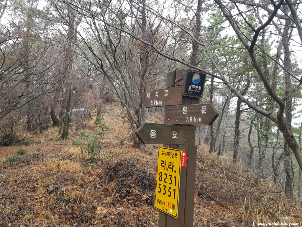 언덕 위에 자리한 동원 중고등학교 옆의 용호로 도로를 따라 걷는다. 등산의 시작이 다가왔는지 드디어 제석봉 표지판이 등장했다. 동원 중고등학교는 사립학교로 참치로 유명한 동원 그룹이 아니라 부산에 기반을 두고 있는 동원 개발이라는 회사의 사학 재단이 관여하고 있는 학교이다.