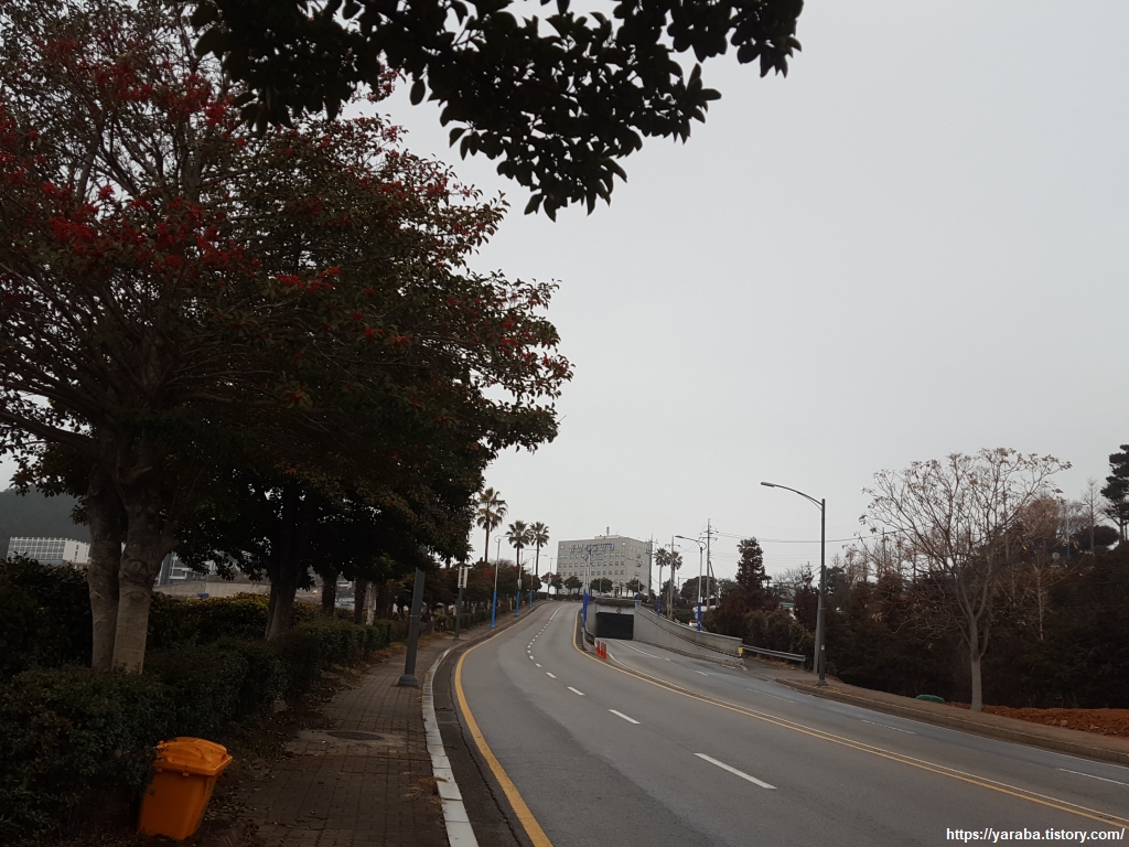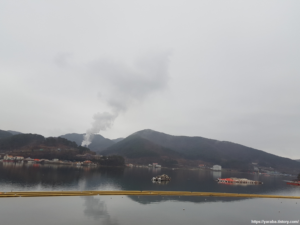 공원을 나오면 원문로를 따라 도로변을 걷는다. 전방의 원문 터널을 통해서 남해안대로 국도와 합류하는 도로다. 바다 건너 하얀 증기를 내뿜고 있는 곳은 통영 명정동에 위치한 통영 고성 광역 자원 회수 시설이다. 이름은 복잡하지만 간단하게 말하면 쓰레기 소각장이다. 자원 회수라는 이름은 생활 폐기물을 소각하여 소각 과정의 열로 온수와 스팀, 전기를 생산한다는 의미일 것이다. 매립장의 연한을 최대화한다는 효과도 있다. 다만, 소각장이 현대인에게 어쩔 수 없는 선택이라면, 반도체 연구하듯이 소각 과정과 부산물 처리 과정에 고도화된 연구가 수반되어 환경오염을 최소화할 수 있었으면 하는 바람이다.