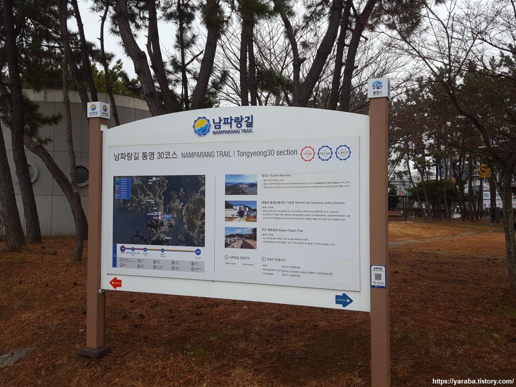 무전동 해변 공원에서 시작하는 남파랑길 30코스는 보슬비와 함께 하는 길이다. 처음에는 배낭에 커버를 씌우고 우산을 들고 출발했지만 보슬비도 내리다 말다 하는 수준이라 배낭 커버는 그대로 둔 상태로 우산은 접기로 한다.