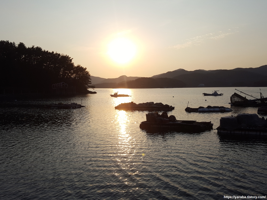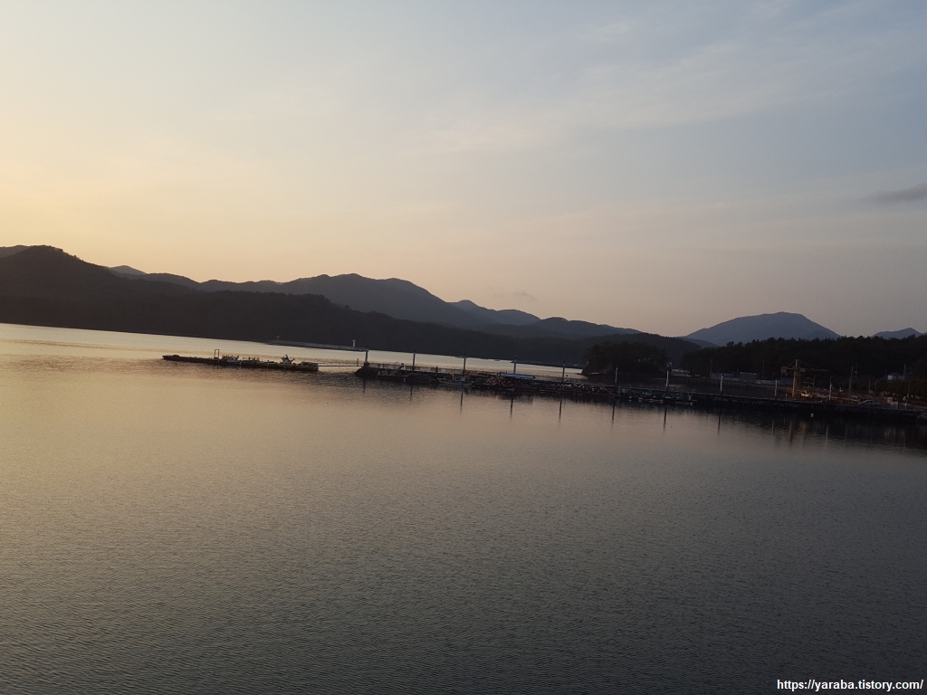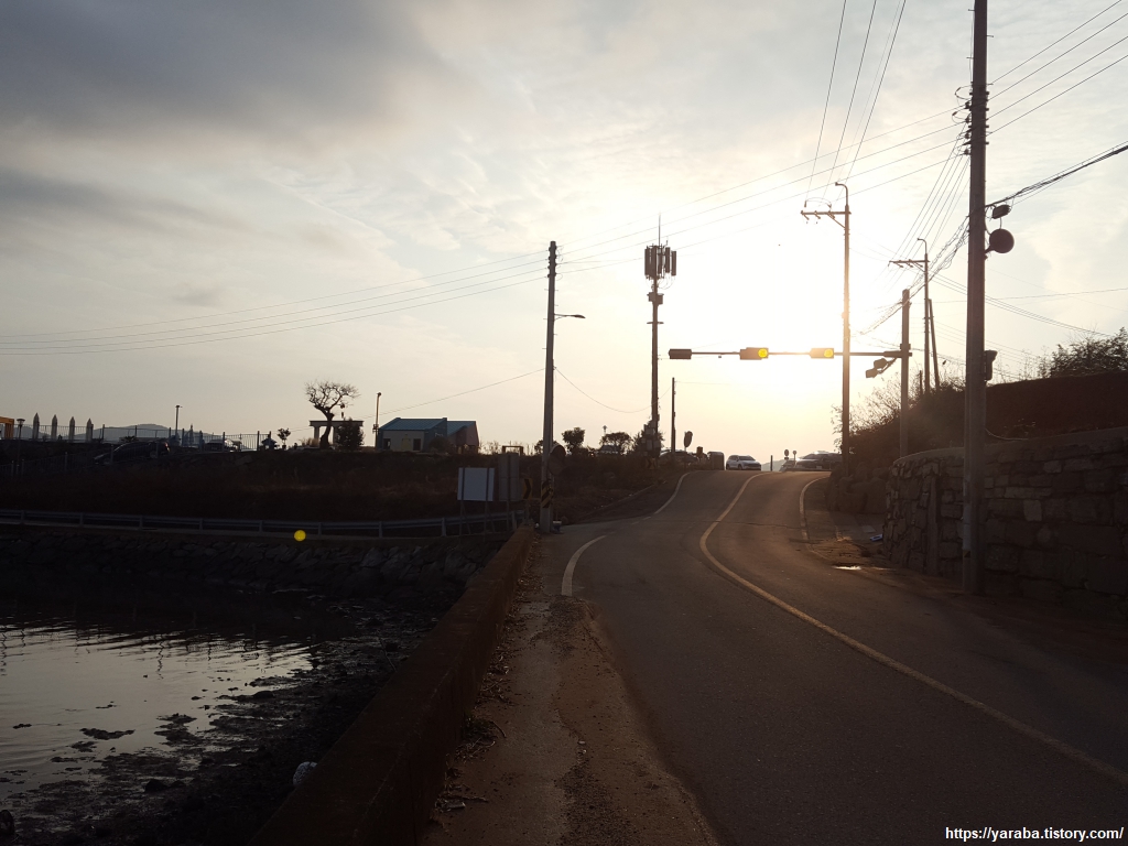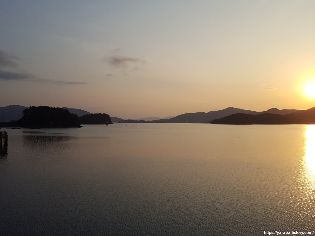 오전 내내 비구름으로 막혔던 하늘은 서쪽 하늘로 조금씩 트이기 시작했다. 트인 하늘 사이로 황금빛 석양이 바다를 조금씩 물들이고 있다.