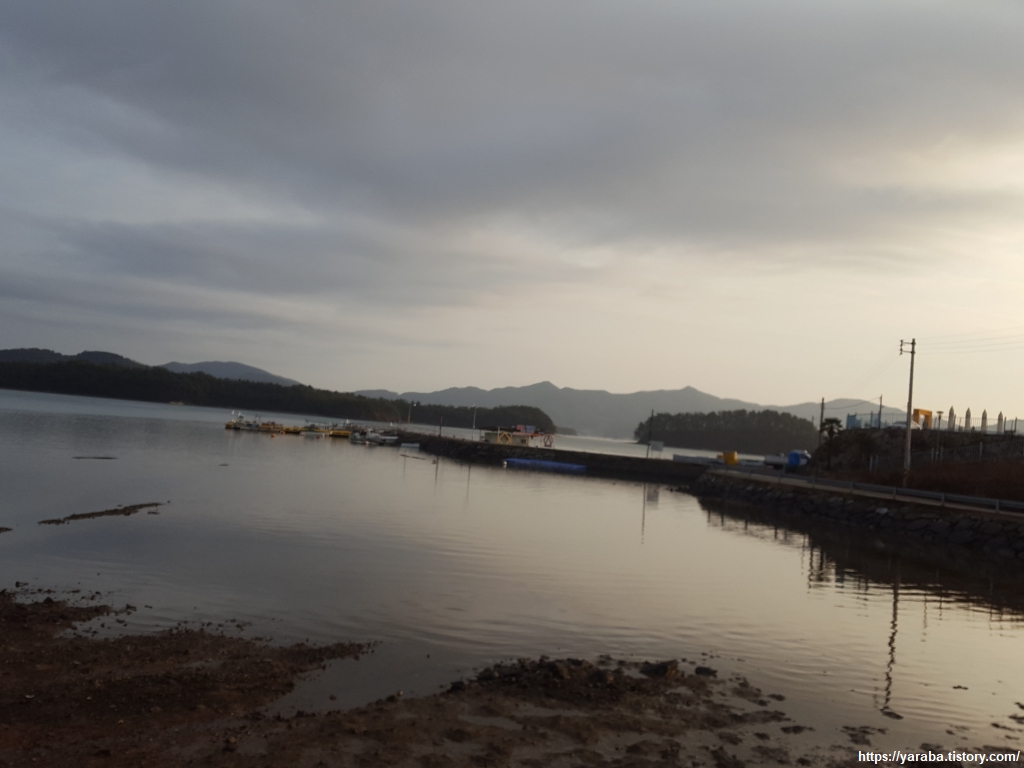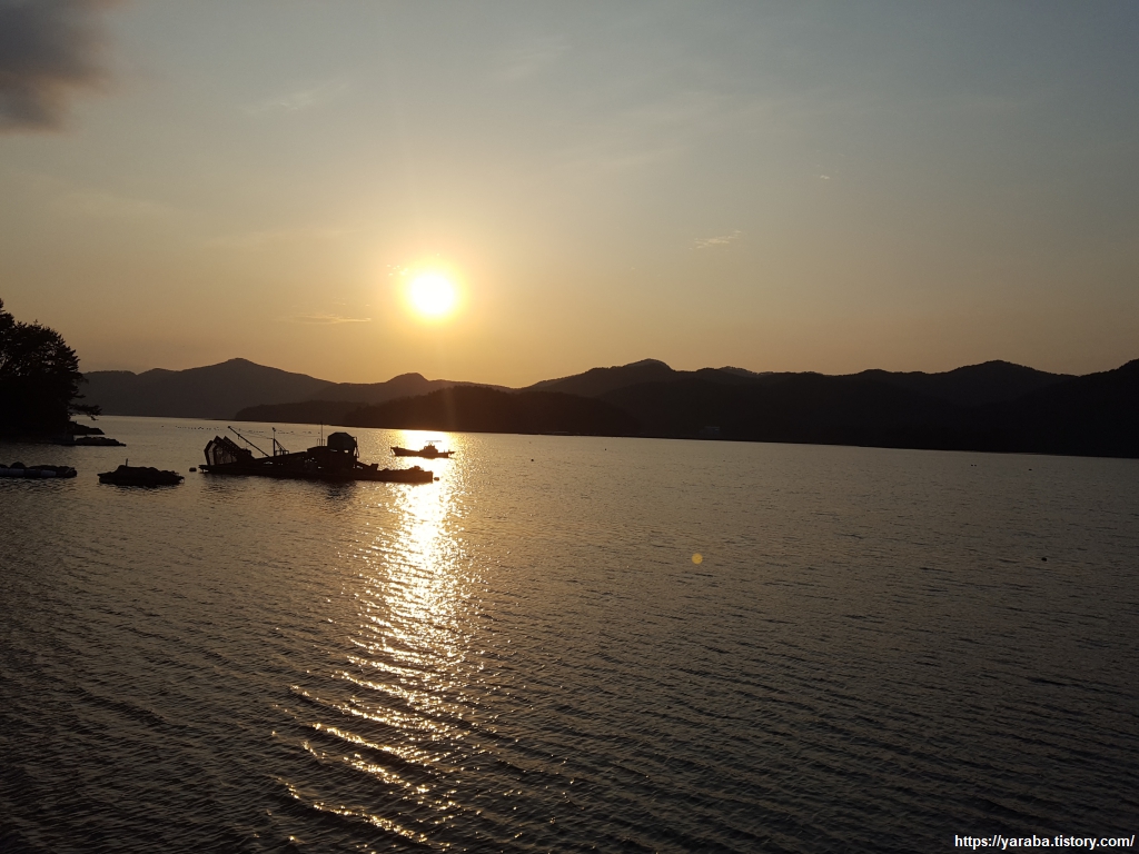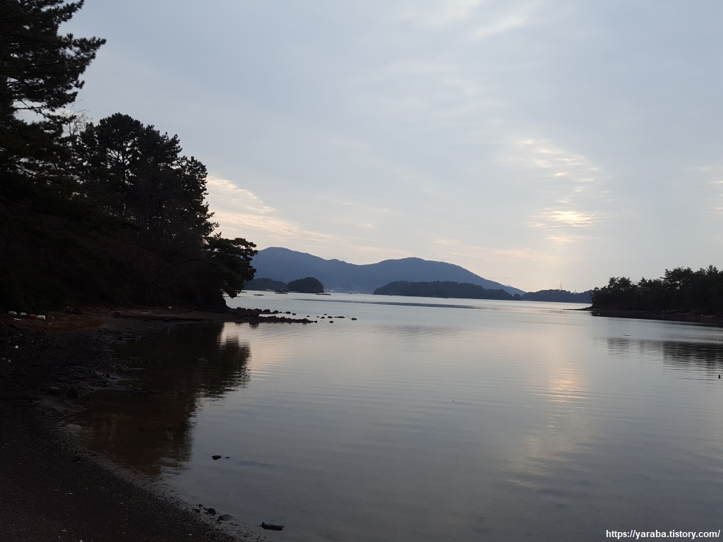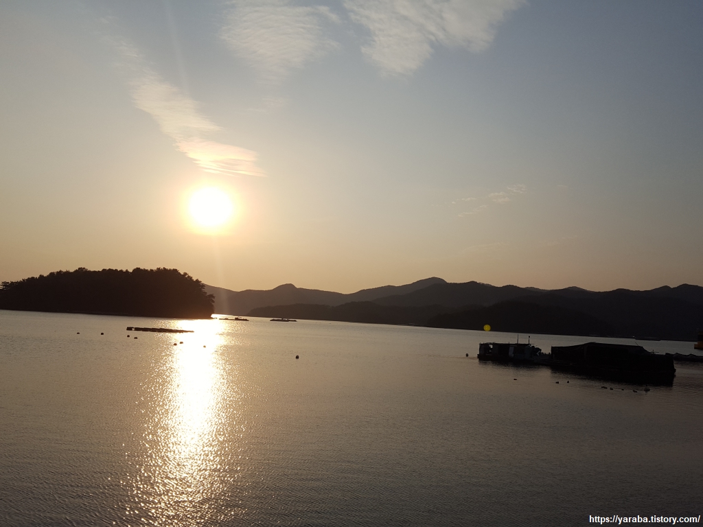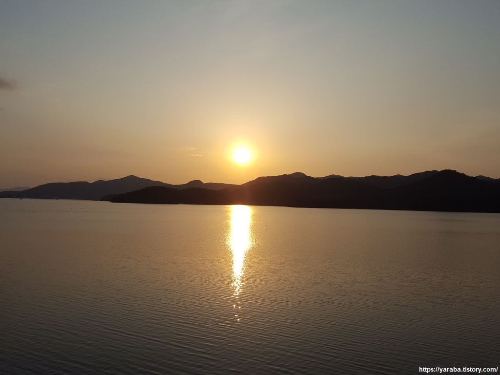 오전 내내 비구름으로 막혔던 하늘은 서쪽 하늘로 조금씩 트이기 시작했다. 트인 하늘 사이로 황금빛 석양이 바다를 조금씩 물들이고 있다.